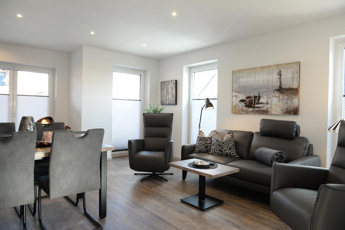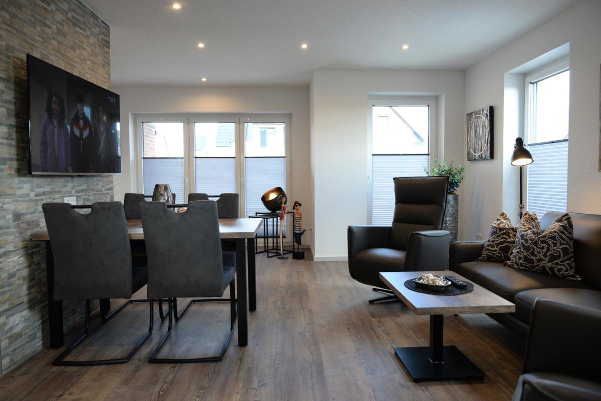 Die Ferienwohnung Deichdeck 1 UR für 2 Personen befindet sich im Erdgeschoss eines neu erbauten Ferienhauses mit insgesamt 4 Ferienwohnungen in Norddeich. Die Wohnung liegt in einer zentralen und sackgassenähnlichen Lage.