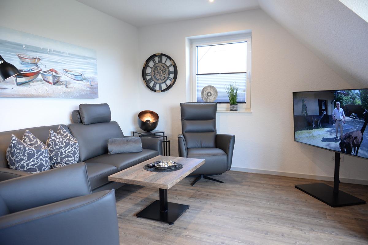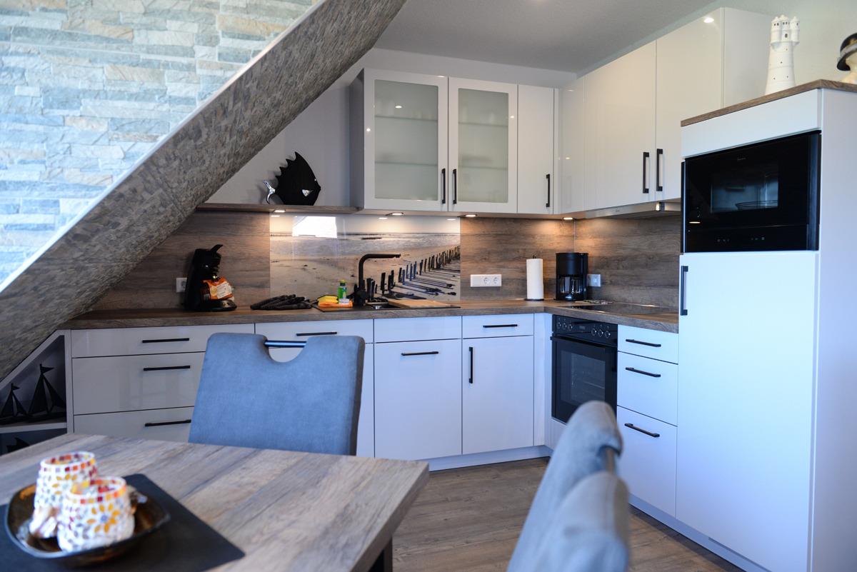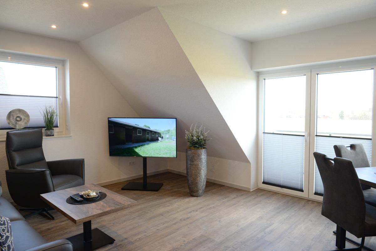 Die Ferienwohnung Deichdeck 2 OL für 3 Personen befindet sich im 1. OG eines neu erbauten Ferienhauses mit insgesamt 4 Ferienwohnungen in Norddeich.