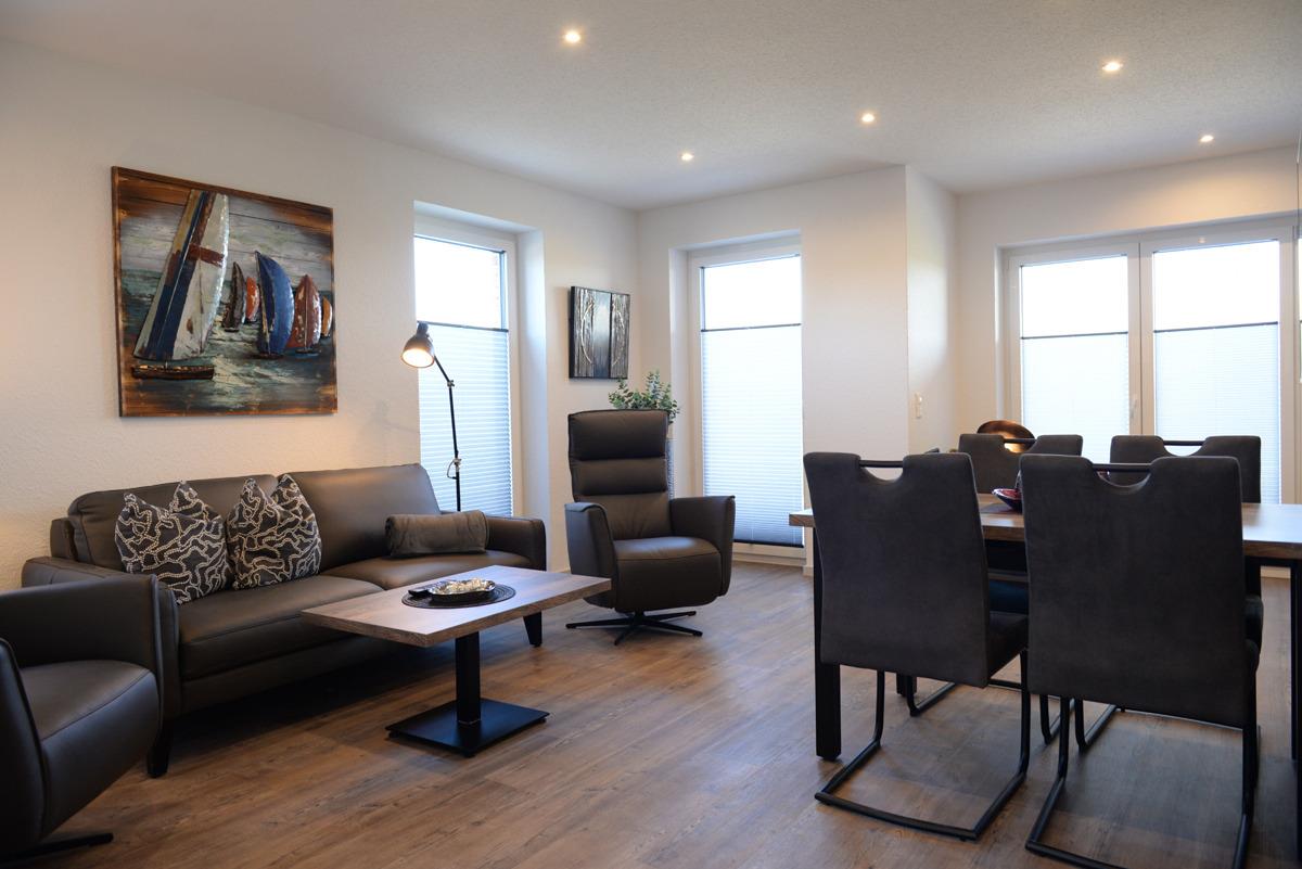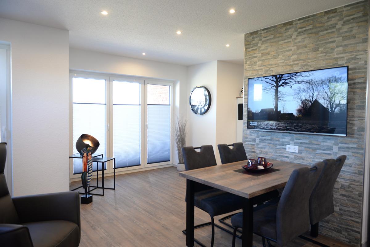 Die Ferienwohnung Deichdeck 3 UL für 2 Personen befindet sich im Erdgeschoss eines neu erbauten Ferienhauses mit insgesamt 4 Ferienwohnungen in Norddeich.