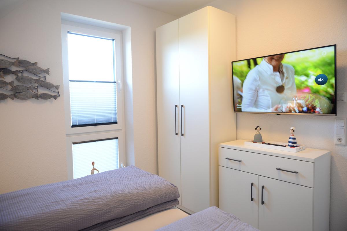 Das Schlafzimmer ist mit einem Doppelbett, Sat/TV, elektrische Außenrollläden + Verdunklungsplissees ausgestattet.