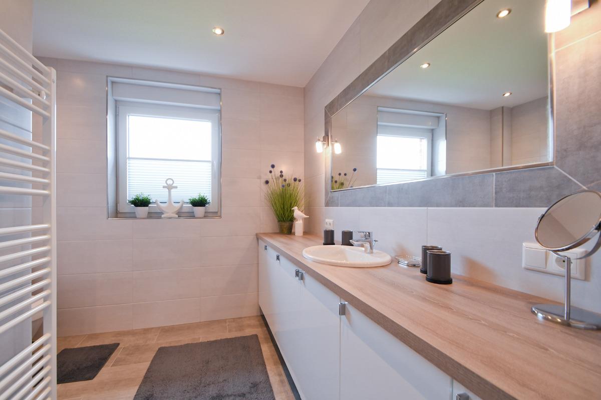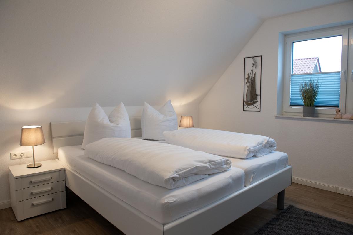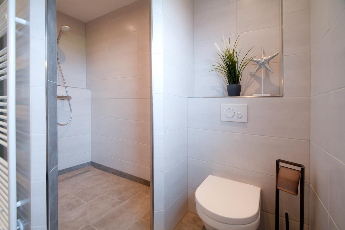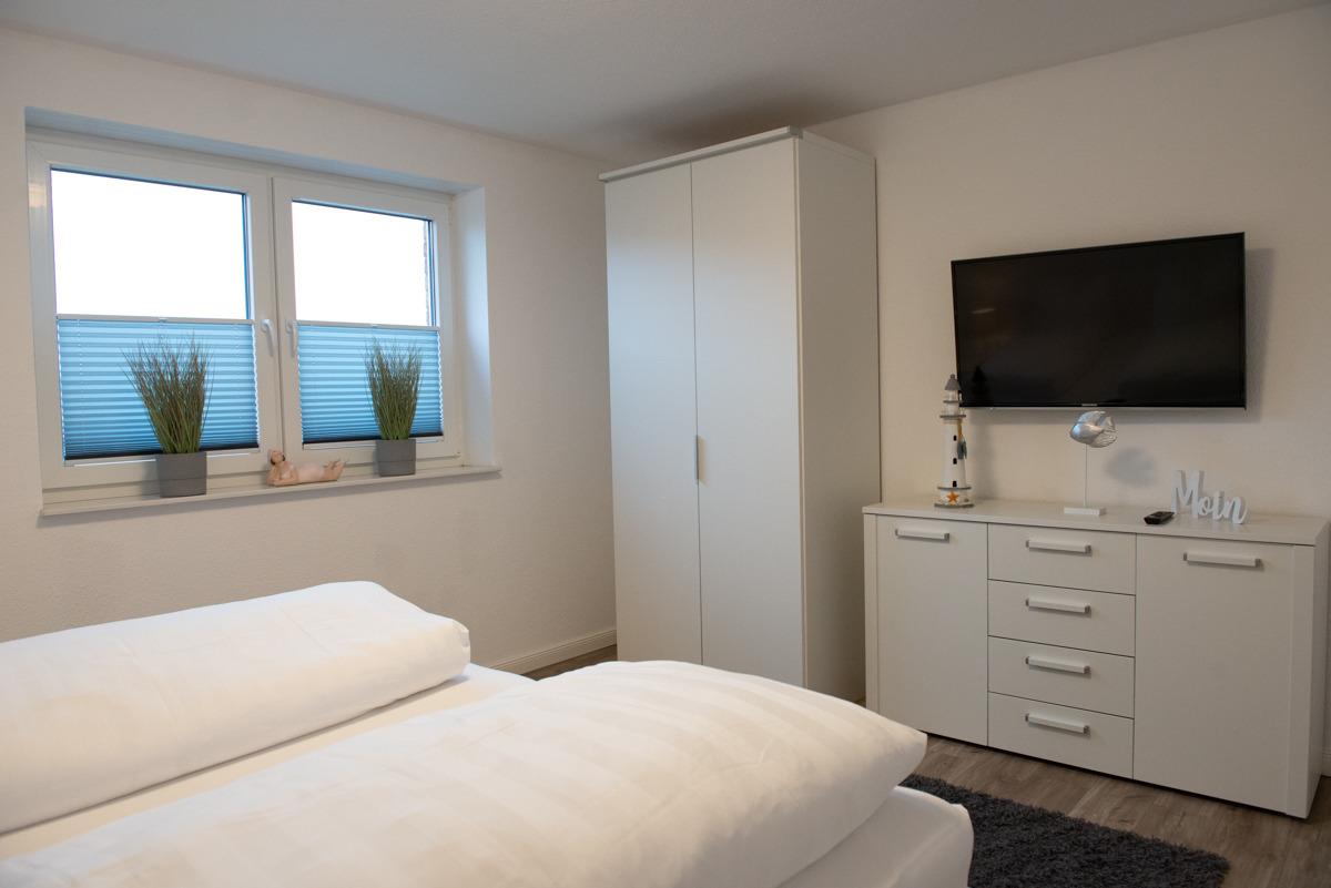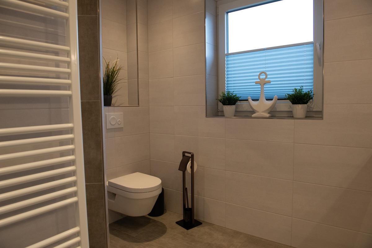Diese ist sehr zentral gelegen am Meer, das Schlafzimmer ist mit einem Doppelbett und einem Fernseher ausgestattet, das moderne Bad mit Fenster hat eine bodenebene Dusche, LED Beleuchtung, eine Waschtischkombination, einen Föhn und einen Handtuch-Heizkörper.