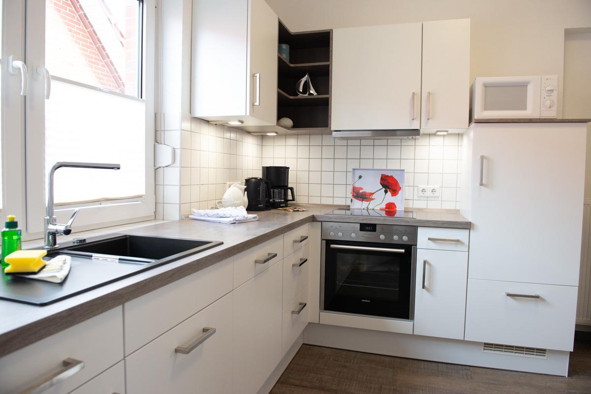 zentral zwischen Norden u. Norddeich, 2 getrennte Schlafzimmer, Waschmaschine, Backofen, PKW Einstellplatz am Haus, Fahrradgarage