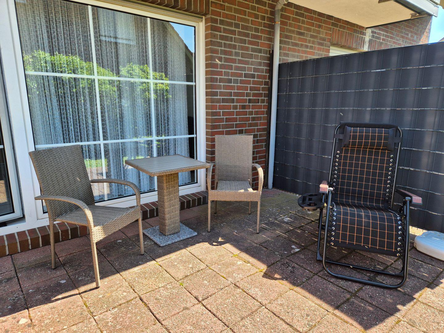 Ein echtes Highlight ist die möblierte Terrasse, perfekt für entspannte Stunden an der frischen Nordseeluft. Ein eigener Stellplatz nicht weit der Wohnung entfernt ist inklusive.