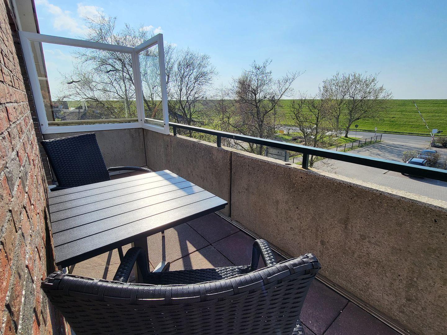 In dieser gemütlichen Ferienwohnung werden Sie einen erholsamen Urlaub in Norddeich verbringen. Bereits vom Balkon können Sie den Deich sehen.