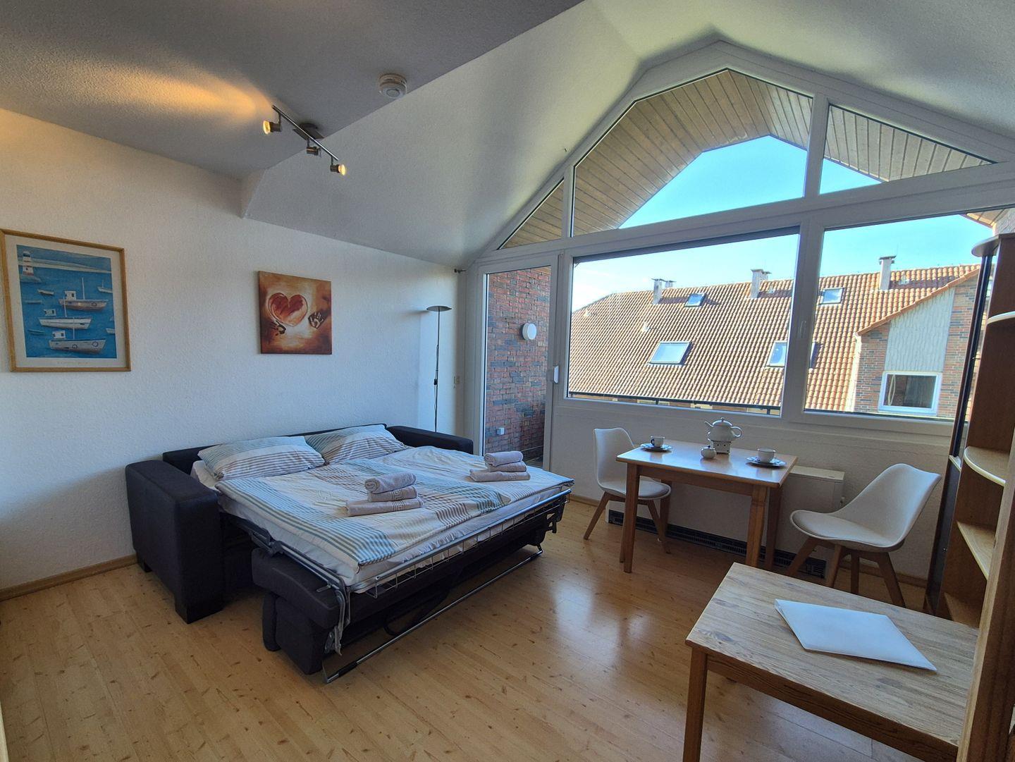 Das Einraumappartement Deichkrone B41 in der Deichstraße 14 bietet auf 30 m² im 2. Stock einen kompakten, durchdacht ausgestatteten Rückzugsort für bis zu 2 Personen. Als Nichtraucher-Unterkunft ist sie ideal für Gäste, die Wert auf eine gepflegte Atmosphäre legen; Dieses Appartement verfügt über kein separates Schlafzimmer: der Wohnbereich ist offen gestaltet und verbindet Wohnzimmer, Essbereich, Schlafen und Küche zu einem angenehmen Raum für entspannte Urlaubstage. Ein Sofa, TV sowie ein Esstisch ergänzen die wohnliche Einrichtung, eine Garderobe sorgt für Ordnung.