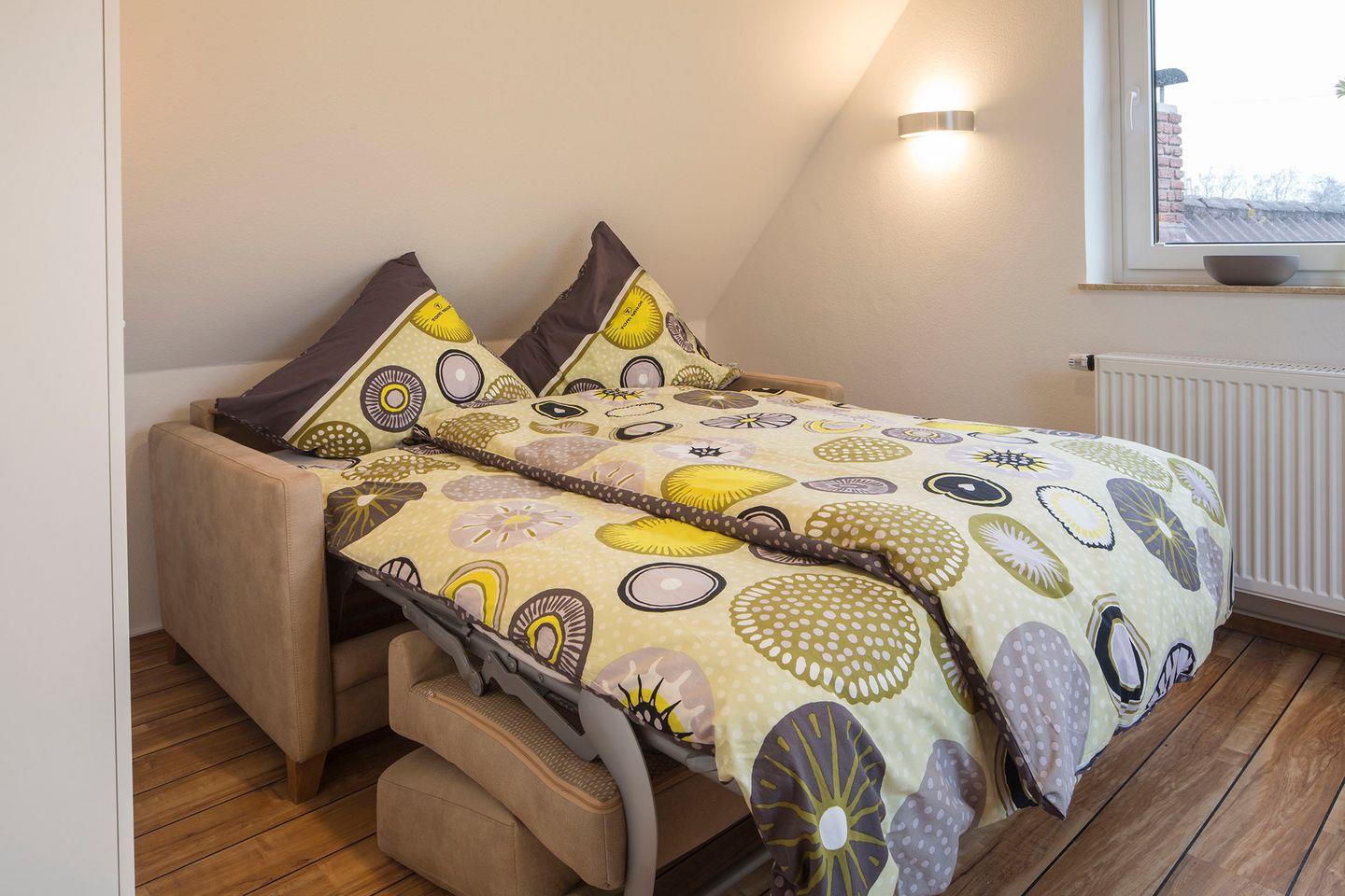 Wohnbereich: Schlafsofa für zusätzliche Gäste, ideal für Familien oder Freunde.