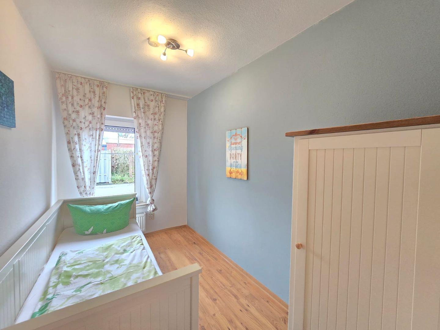 Ein zweites Schlafzimmer mit Einzelbett, ideal für ein Kind oder eine dritte Person.