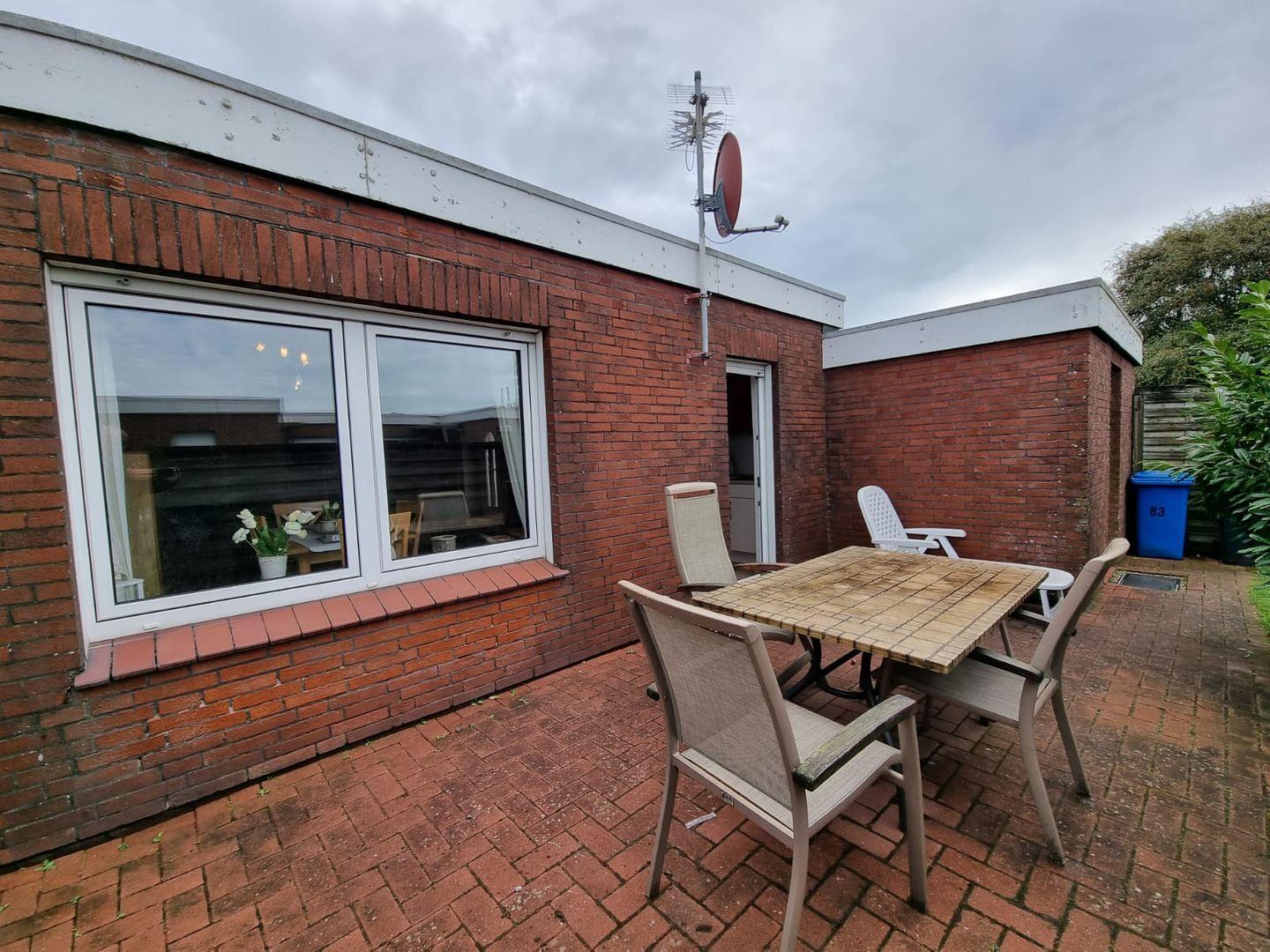 Das Ferienhaus verfügt über eine eigene Terrasse und ein kleines Gartenstück, perfekt zum Frühstücken, Sonnenbaden oder einfach zum Entspannen nach einem Strandtag.