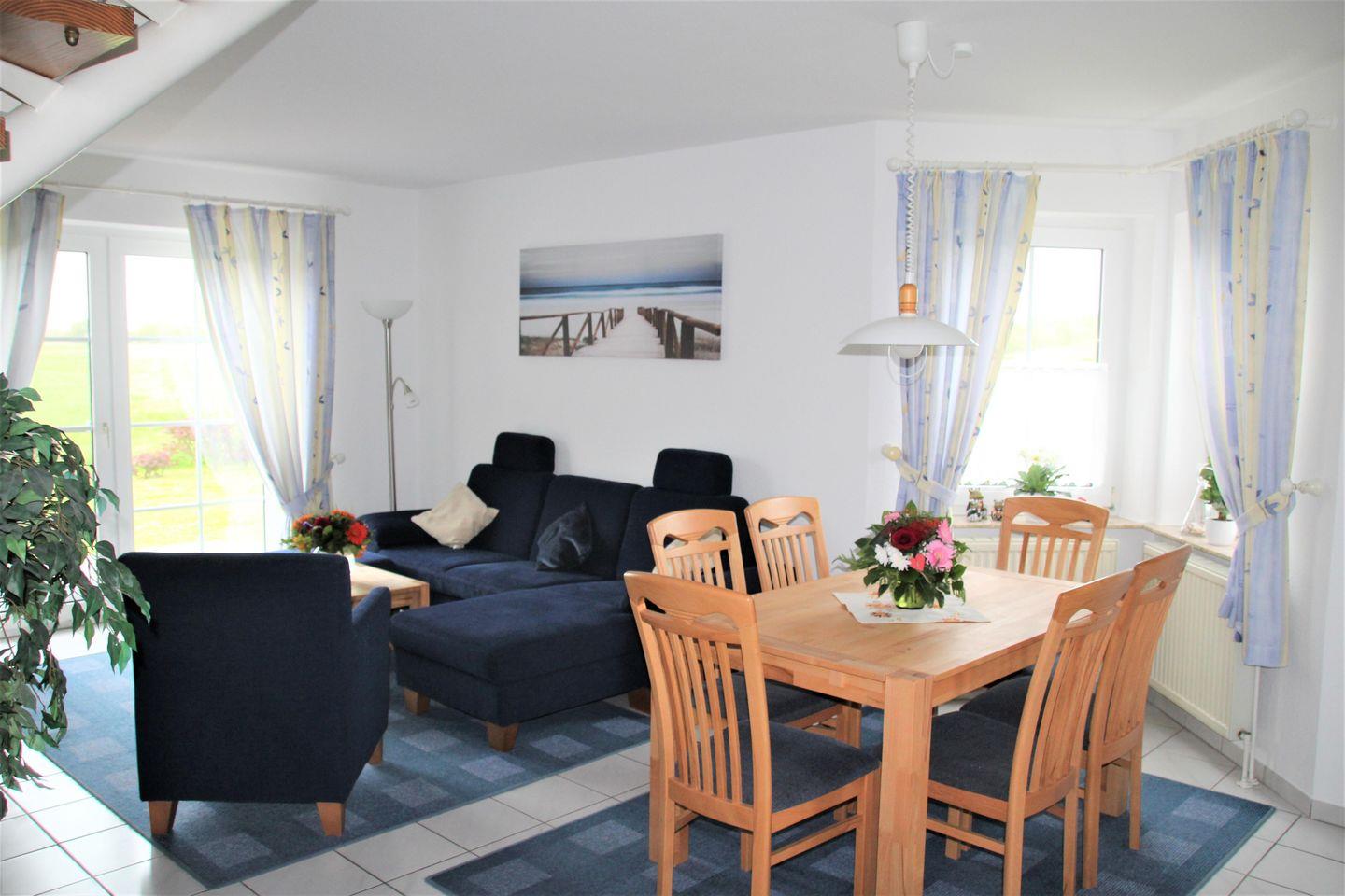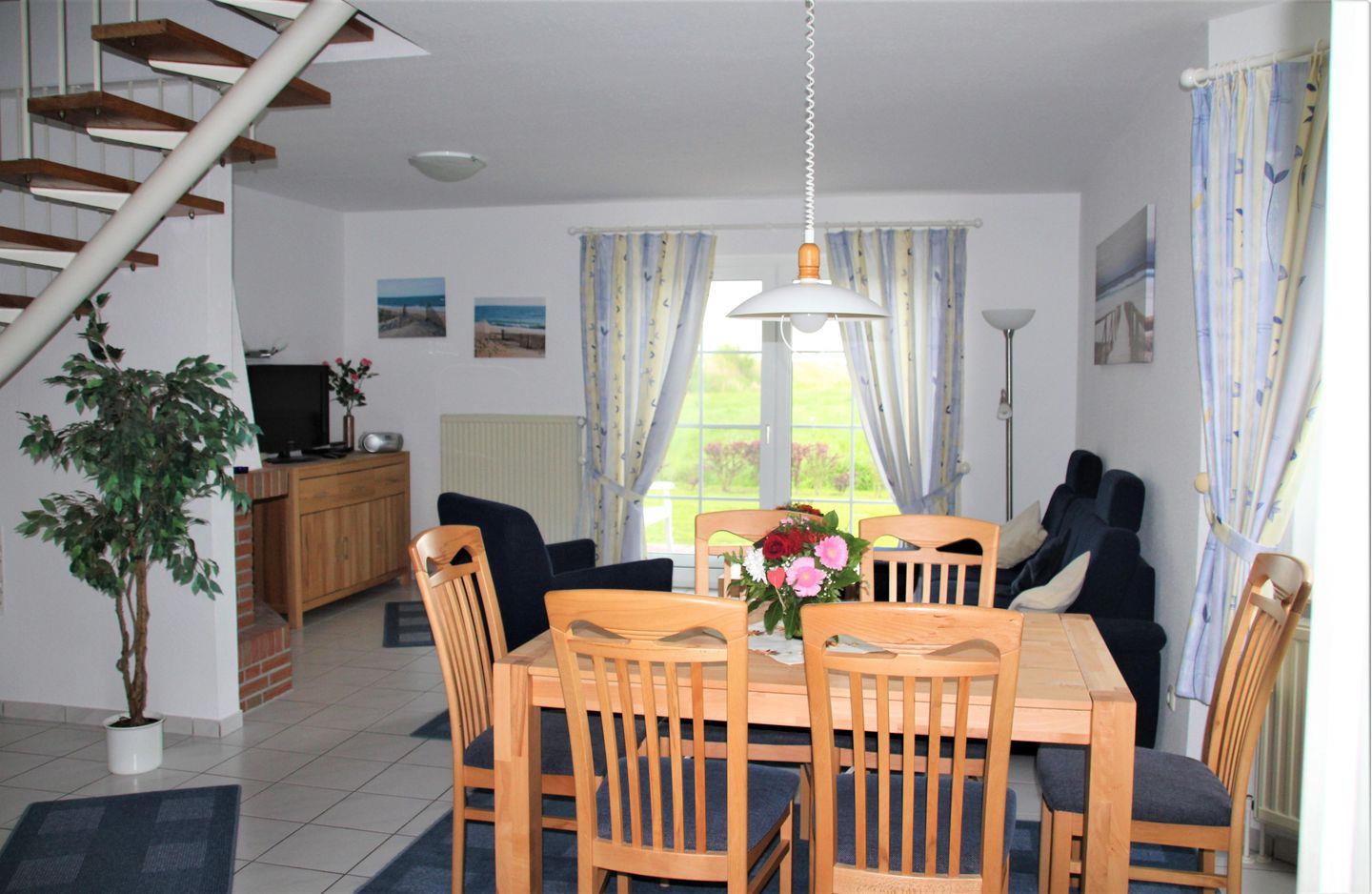 Im Erdgeschoß befindet sich der offene großzügige, geflieste Wohn-Essbereich mit offenem Kamin, eine neue gemütliche Sitzlandschaft und Flachbildfernseher ( SAT-TV) mit Blu-Ray Player und eine reichlich ausgestattete Einbauküche mit Geschirrspülmaschine, Mikrowelle, Kühlschrank (mit Tiefkühlfach), Toaster, Wasserkocher, Eierkocher, u.v.m.
