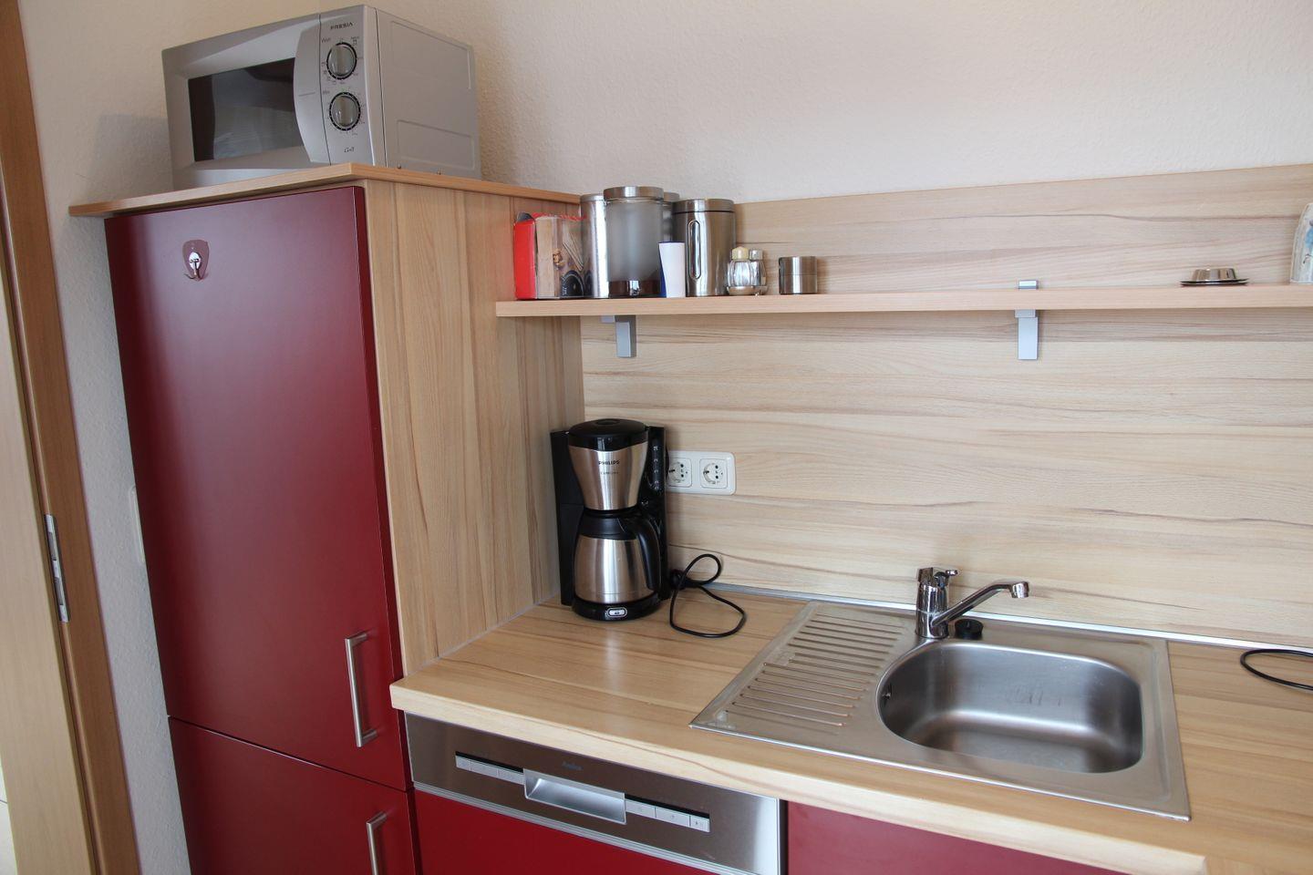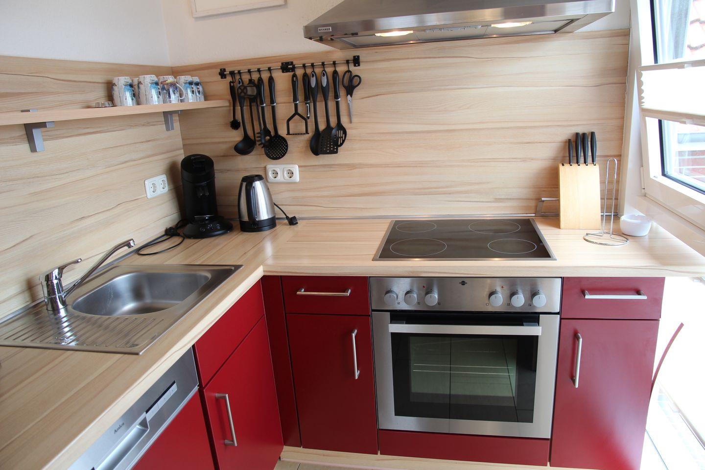 Die Küche ist komplett ausgestattet (Backofen, Geschirrspülmaschine, Kühlschrank mit Gefrierfach, Senseomaschine, Kaffeemaschine, Toaster, Eierkocher, Mikrowelle). Im Wohnzimmer befinden sich ein TV Flachbildschirm sowie ein CD-Player + Radio.