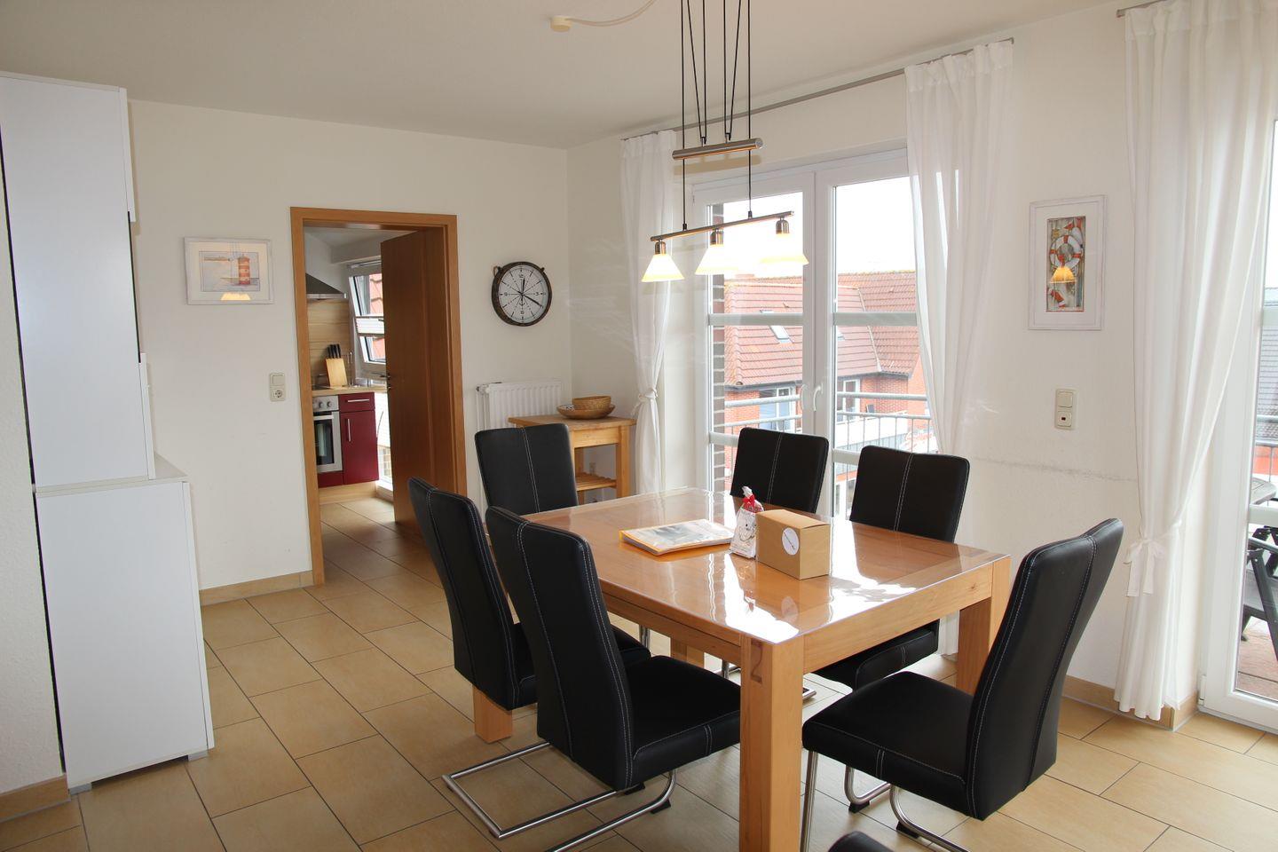 Große sonnige Nichtraucher-Ferienwohnung über 2 Etagen im 2. + 3. OG mit Aufzug. Auf 110 m² können es sich bis zu 6 Personen gemütlich machen.