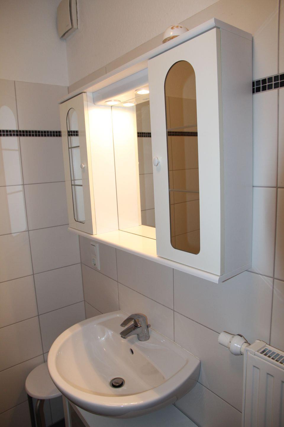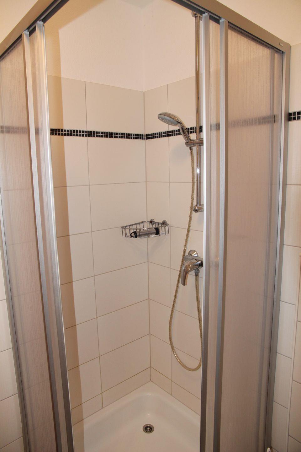 Das Badezimmer mit Fußbodenerwärmung verfügt über eine Dusche (Einstiegshöhe ca. 15 cm).