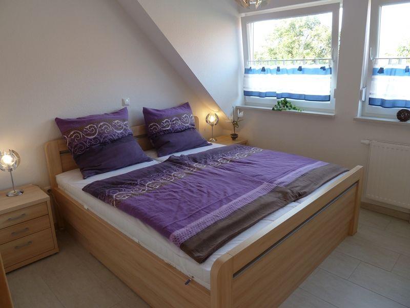 Das Schlafzimmer im 1. OG ist gemütlich eingerichtet, mit einem Doppelbett und einem großen Kleiderschrank. Außenjalousien können den Raum komplett abdunkeln. Das Schlafzimmer im 2. OG verfügt über 2 Einzelbetten (0,90x2,00 m) und genügend Stauraum für Ihre mitgebrachten Sachen. 2. TV mit DVD im OG vorhanden! Das große Veluxfenster lässt sich komplett abdunkeln. Dieser Raum verfügt auch über eine separate Toilette und Waschbecken.