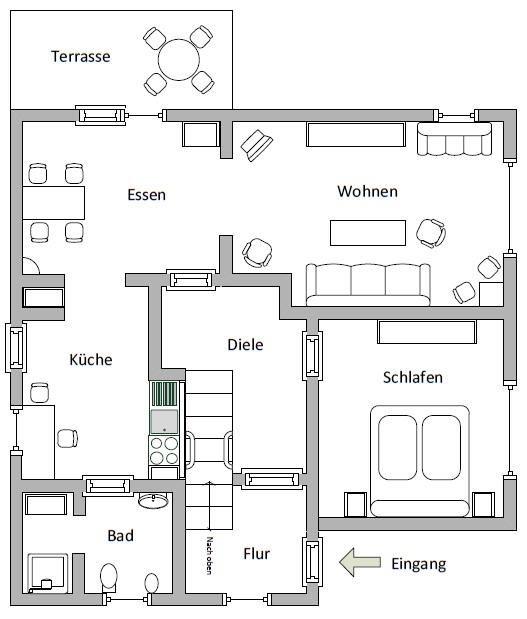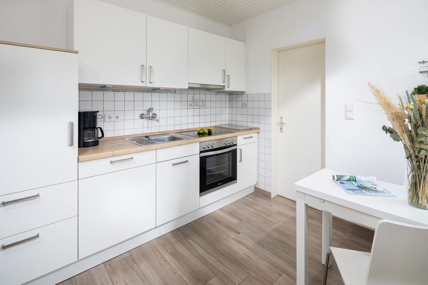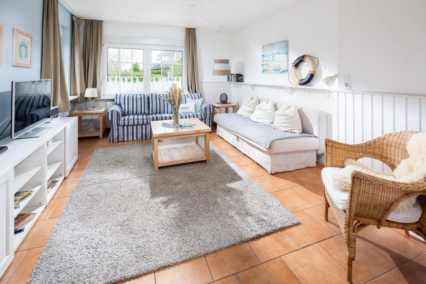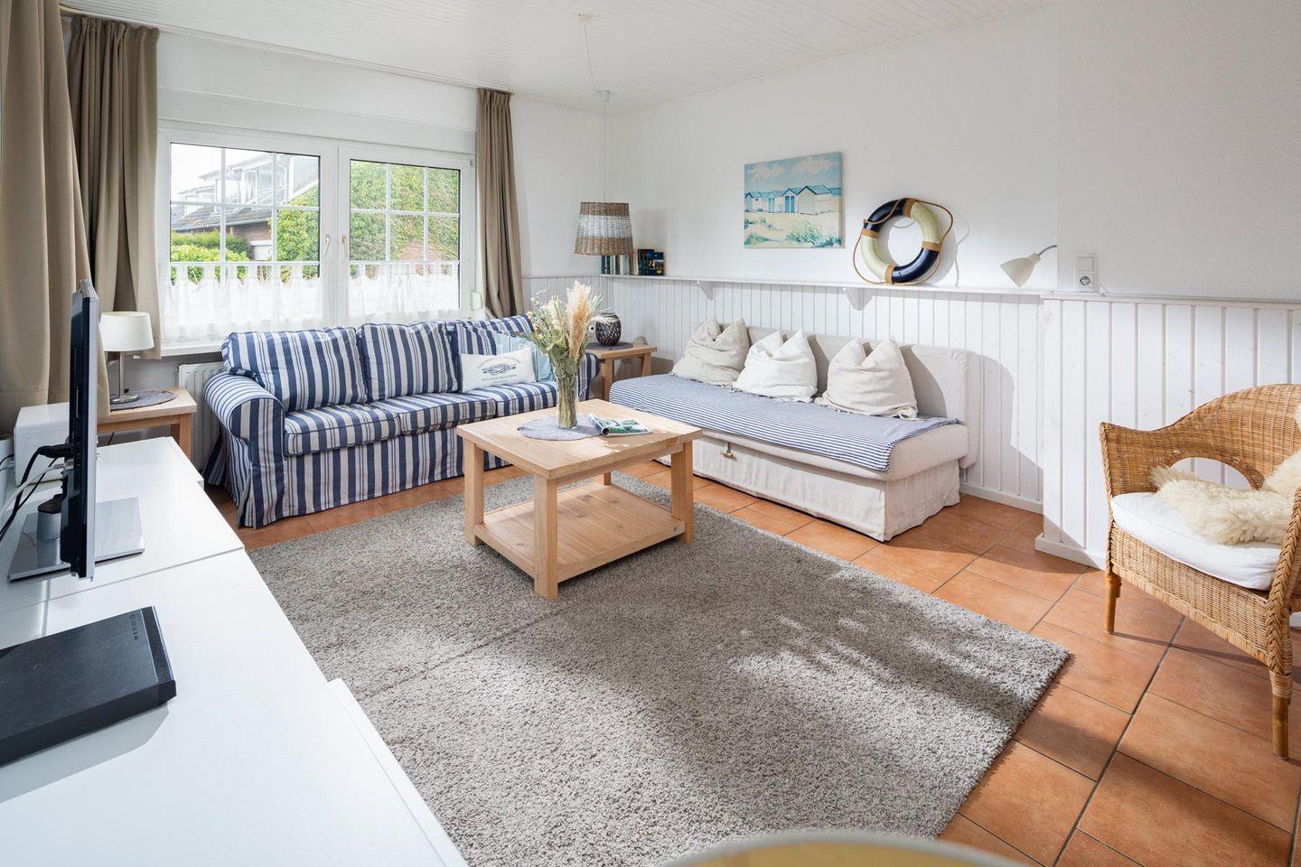 Die Wohnung ist vollständig ausgestattet und bietet Ihnen eine voll funktionsfähige Küche, ein geräumiges Wohnzimmer und eine gemütliche Essecke. Das Highlight der Wohnung ist der eigene Garten mit einer windgeschützten Terrasse, die als offener Wintergarten gestaltet ist. Zudem verfügt die Wohnung über ein Schlafzimmer mit einem Doppelbett und ein Wohnzimmer mit einem Tagesbett. Eine Waschmaschine und ein Wäschetrockner stehen (zur gemeinschaftlichen Nutzung) zur Verfügung, was besonders für längere Aufenthalte von Vorteil ist. Ein PKW-Stellplatz am Haus gehört ebenfalls zur Wohnung. Hier darf auch der vierbeinige Freund mitkommen, denn die Ferienwohnung heißt auch Hunde herzlich willkommen. Erlaubt ist maximal 1 Hund (Höhe maximal kniehoch).
