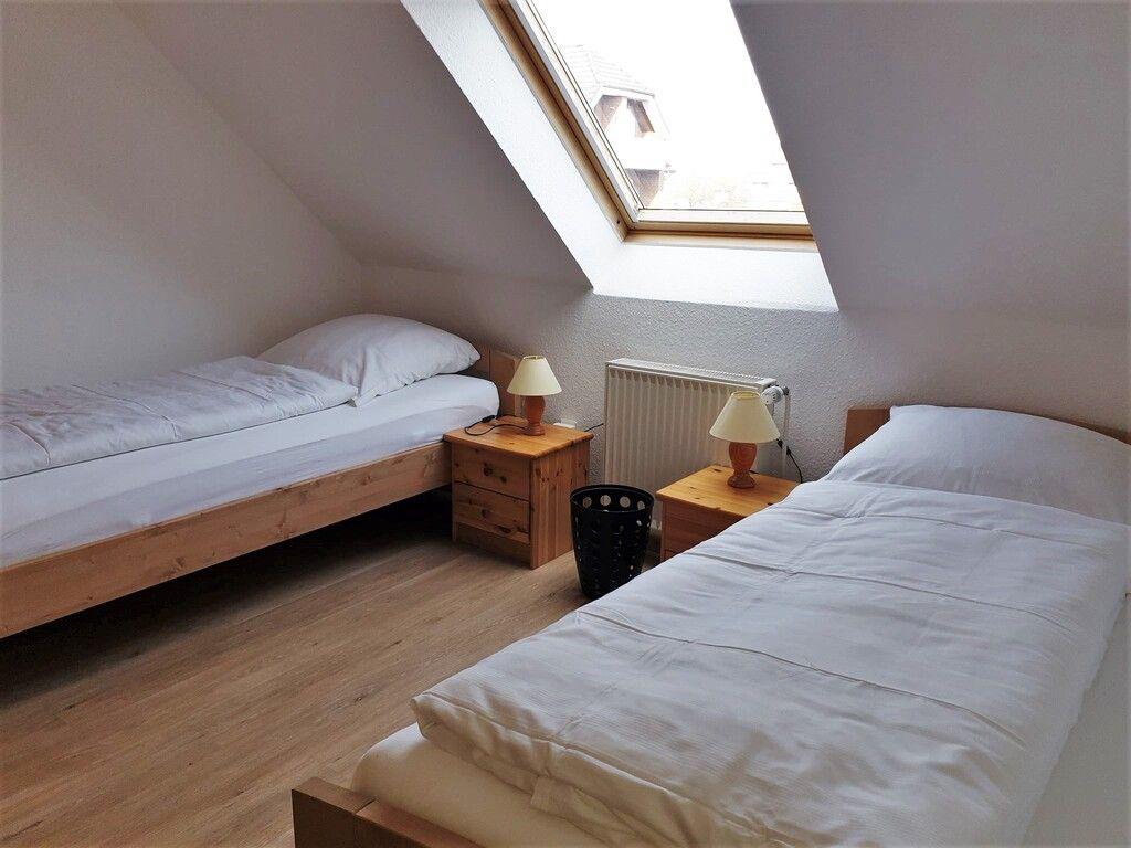 Die 3-Raum-Wohnung im OG verfügt über ein separates Schlafzimmer mit Doppelbett, ein separates Schlafzimmer mit zwei Einzelbetten, einen Wohnraum, eine separate Küche mit 4-Platten-Herd, Backofen und Geschirrspüler sowie ein Duschbad mit Badewanne & WC. Terrasse vor dem Haus. Nichtraucherwohnung! PKW Stellplatz am Haus.