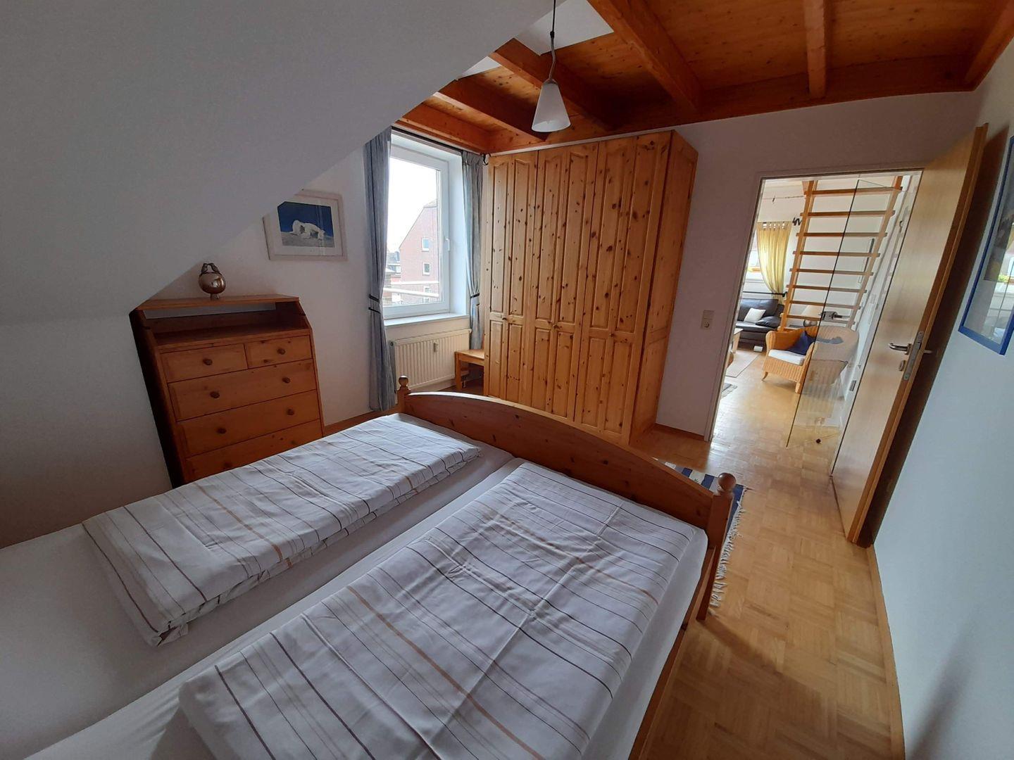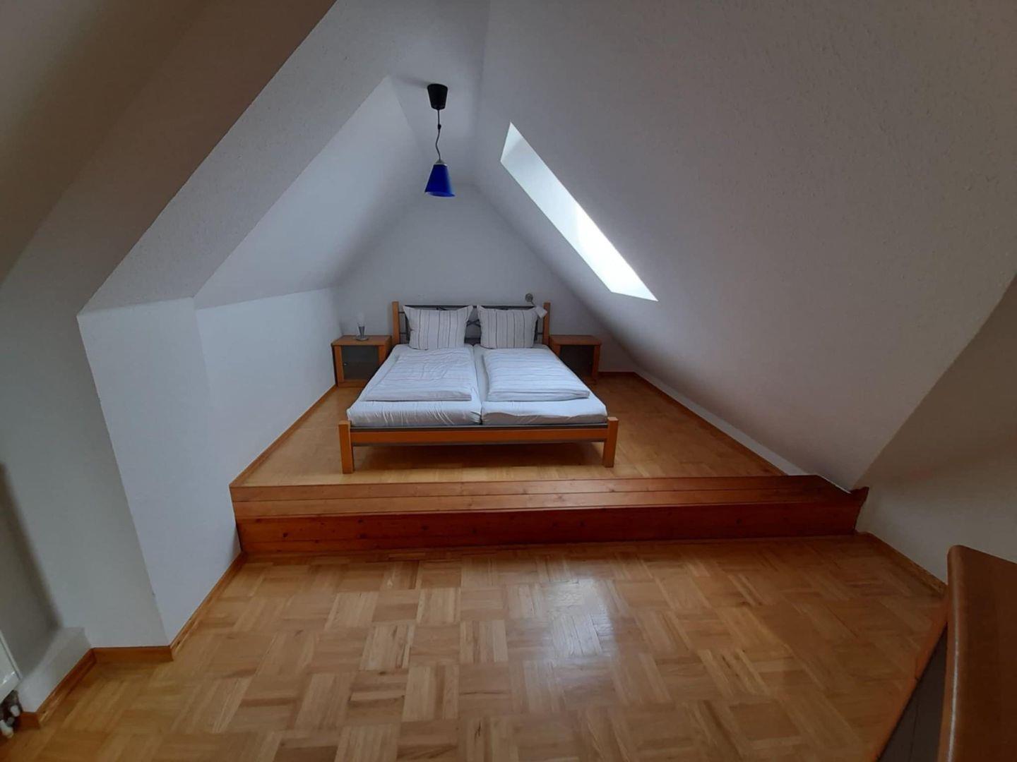 Die Maisonette-Ferienwohnung in der 3. Etage verfügt über ein separates Schlafzimmer mit Doppelbett, Wohnraum (TV), Küche (Backofen, Spülmaschine) mit Essbereich sowie Badezimmer mit Dusche/WC. Über eine Treppe (steil!) erreichen Sie eine Galerie mit Sitz- und Schlafmöglichkeit für bis zu 2 Personen. Vom Wohnraum erhalten Sie Zugang zum großzügigen Balkon. NICHTRAUCHERWOHNUNG! Parkplatz am Haus.