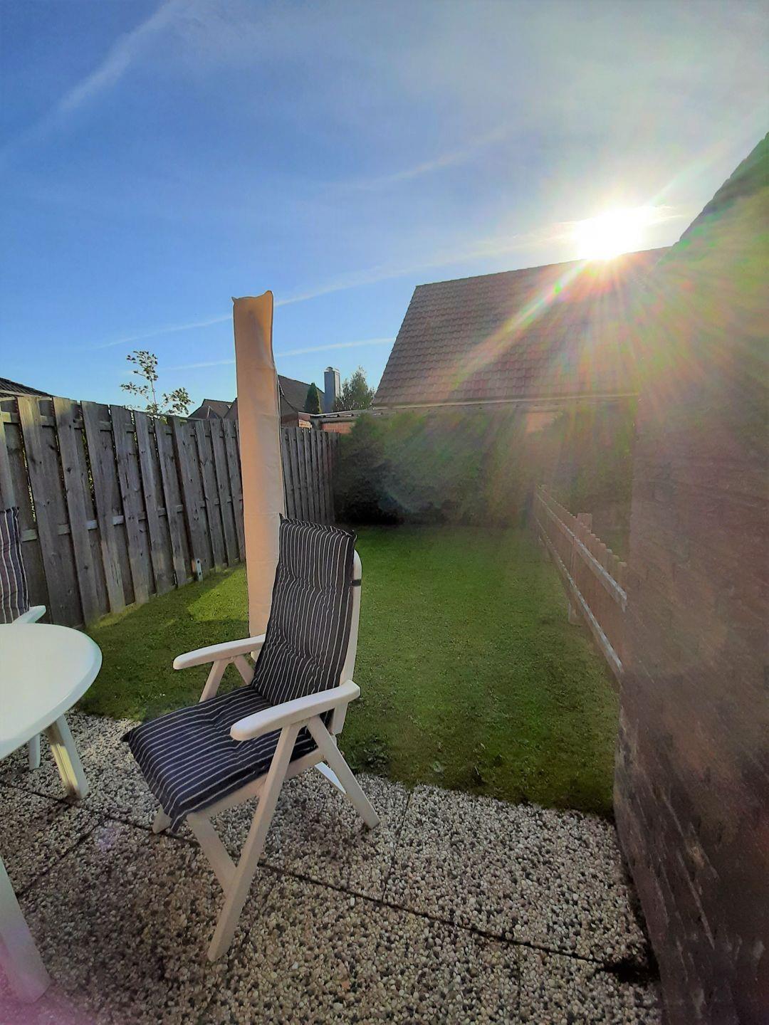 In ruhiger Sackgassenendlage und dennoch zentral gelegen. Fußweg zum Strand (10 Gehminuten) direkt am Haus. Geschäfte des täglichen Bedarfes, Cafés & Restaurants, Bäckereien usw. sind fußläufig erreichbar.