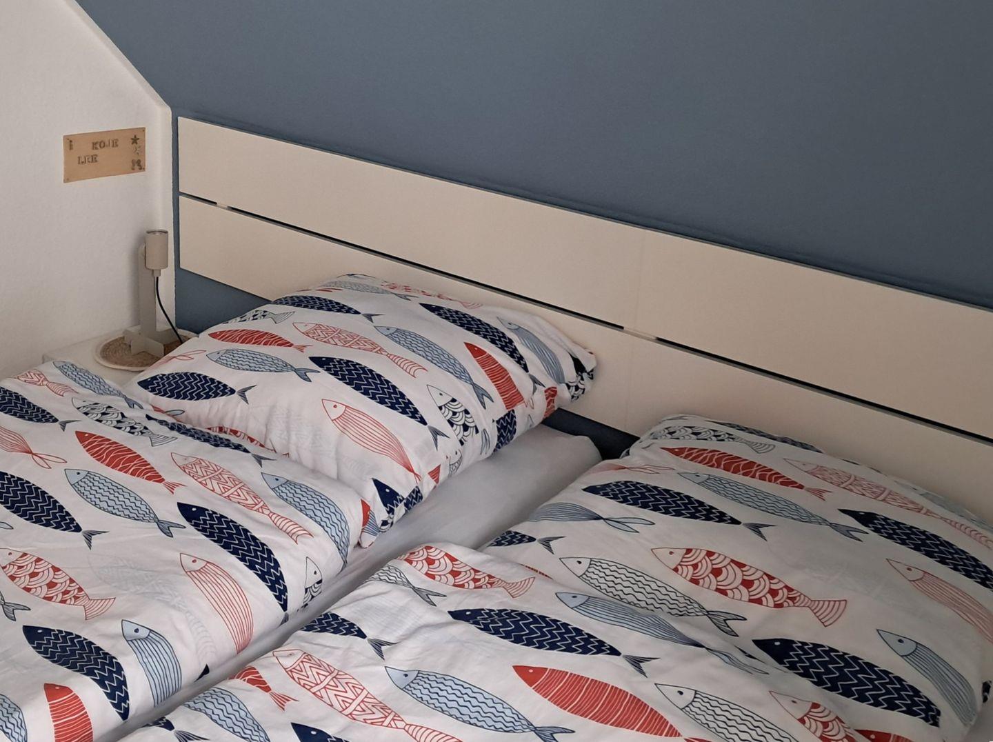 Auf 60 m² erwartet die Gäste ein hell und freundlich eingerichtetes Ferienhaus für bis zu vier Personen. Auf zwei Etagen verteilen sich zwei Schlafzimmer (1 Elternschlafzimmer mit Doppelbett, 1 Kinderzimmer mit 2 Einzelbetten) ein Wohnzimmer (Sitzecke mit Radio / TV und Essecke), eine Küche (Kühlschrank, Backofen, Herd (ab November Cerankochfeld), ab November Spülmaschine, Microwelle usw.) ein Badezimmer (mit Dusche) und ein Gäste-WC. Ein nach Südosten ausgerichteter Garten steht den Gästen zur ausschließlichen Nutzung zur Verfügung.