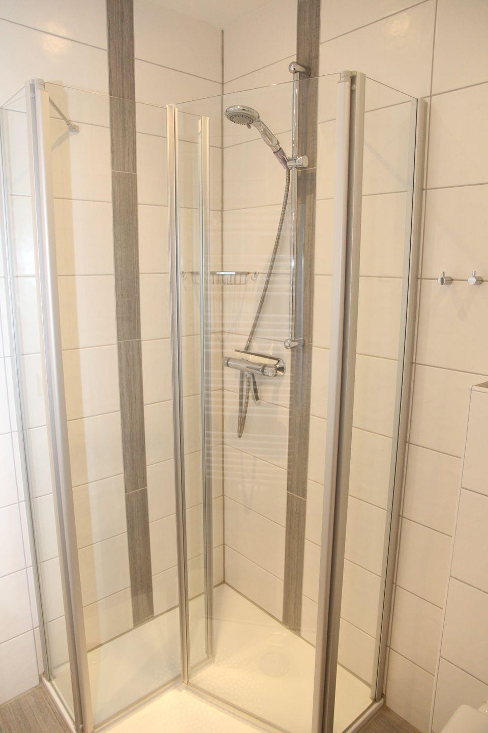 Ebenfalls auf dieser Etage finden Sie ein Schlafzimmer mit Doppelbett und angrenzendem, begehbaren Kleiderschrank, sowie das Duschbad mit Handtuchheizkörper, Fußbodenheizung und ebenerdiger Dusche.