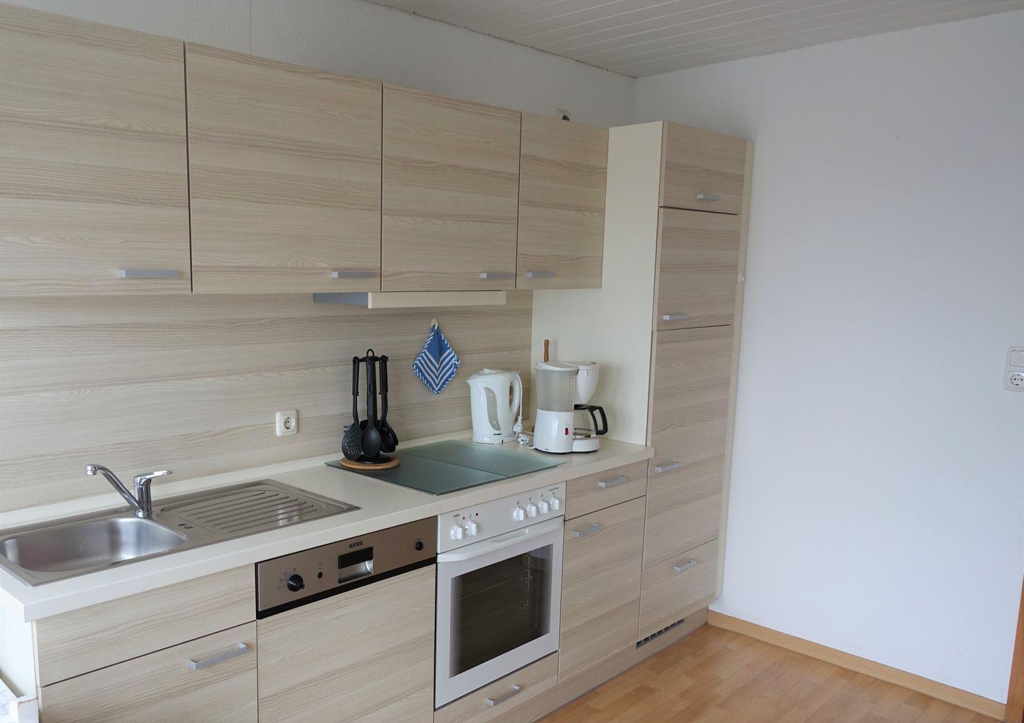 Das gemütliche Wohnzimmer mit Essbereich laden zum Verweilen bei einem gemeinsamen Frühstück ein. Die moderne Küche ist ausgestattet mit einem Herd mit Backofen, einem Kühlschrank mit Gefrierfach sowie einer Spülmaschine. Ferner sind ein Toaster, Wasserkocher und eine Kaffeemaschine vorhanden.