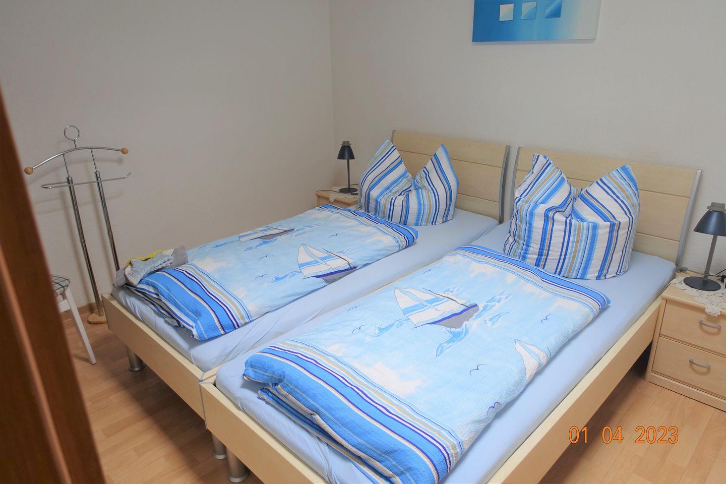 Weiter befindet sich in dem Ferienhaus 2 Schlafzimmer jweils mit einem Doppelbett. Ferner ist noch ein Bad mit Dusche vorhanden.