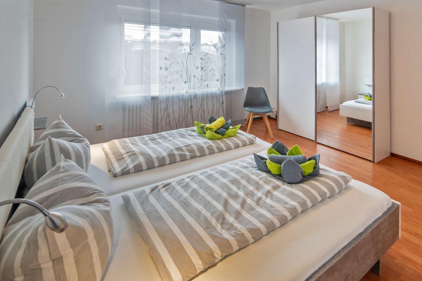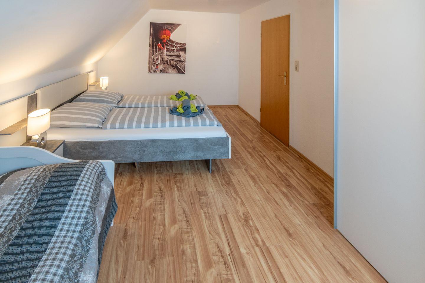 Ferner sind im Erdgeschoss noch 2 Schlafzimmer, eins mit einem Doppelbett und ein weiteres mit 2 Einzelbetten.