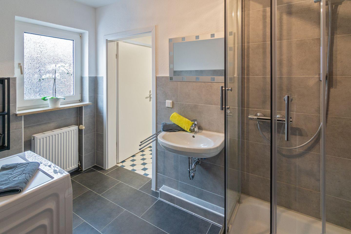 Weiter finden Sie hier ein modernes Duschbad mit seperatem WC.