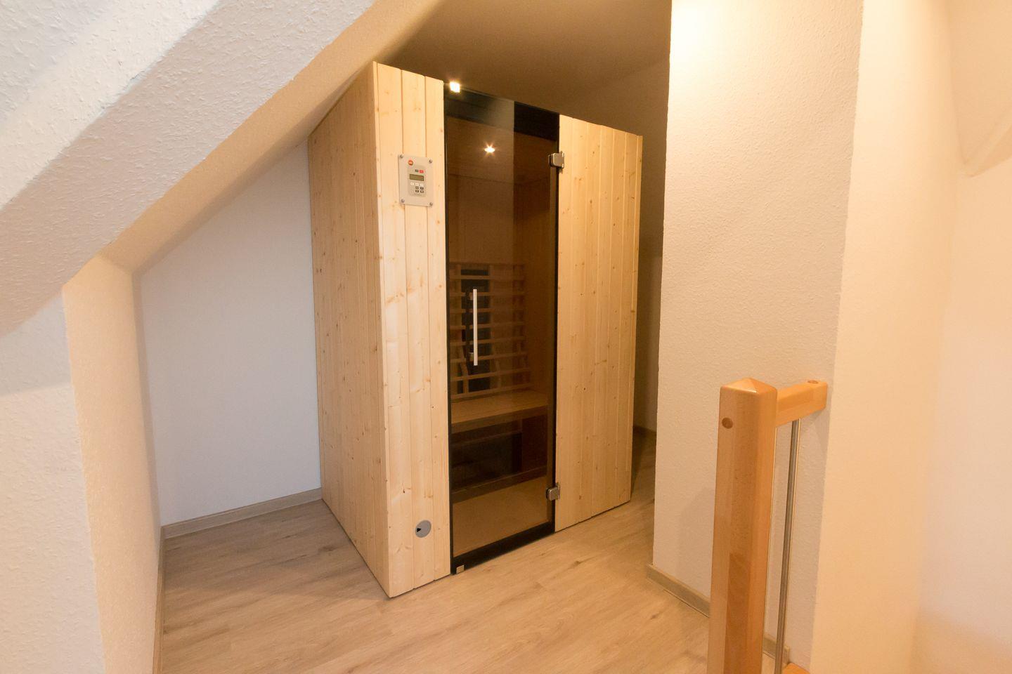 Als Highlight ist diese Wohnung mit einer privaten Infrarot-Sauna für zwei Personen ausgestattet, die Sie kostenlos benutzen können. Den Alltag eine Weile hinter sich lassen, Körper und Geist ruhen lassen, Vitalität tanken - Erleben Sie pure Entspannung in Ihrer eigenen Infrarot-Sauna wann immer Sie möchten.