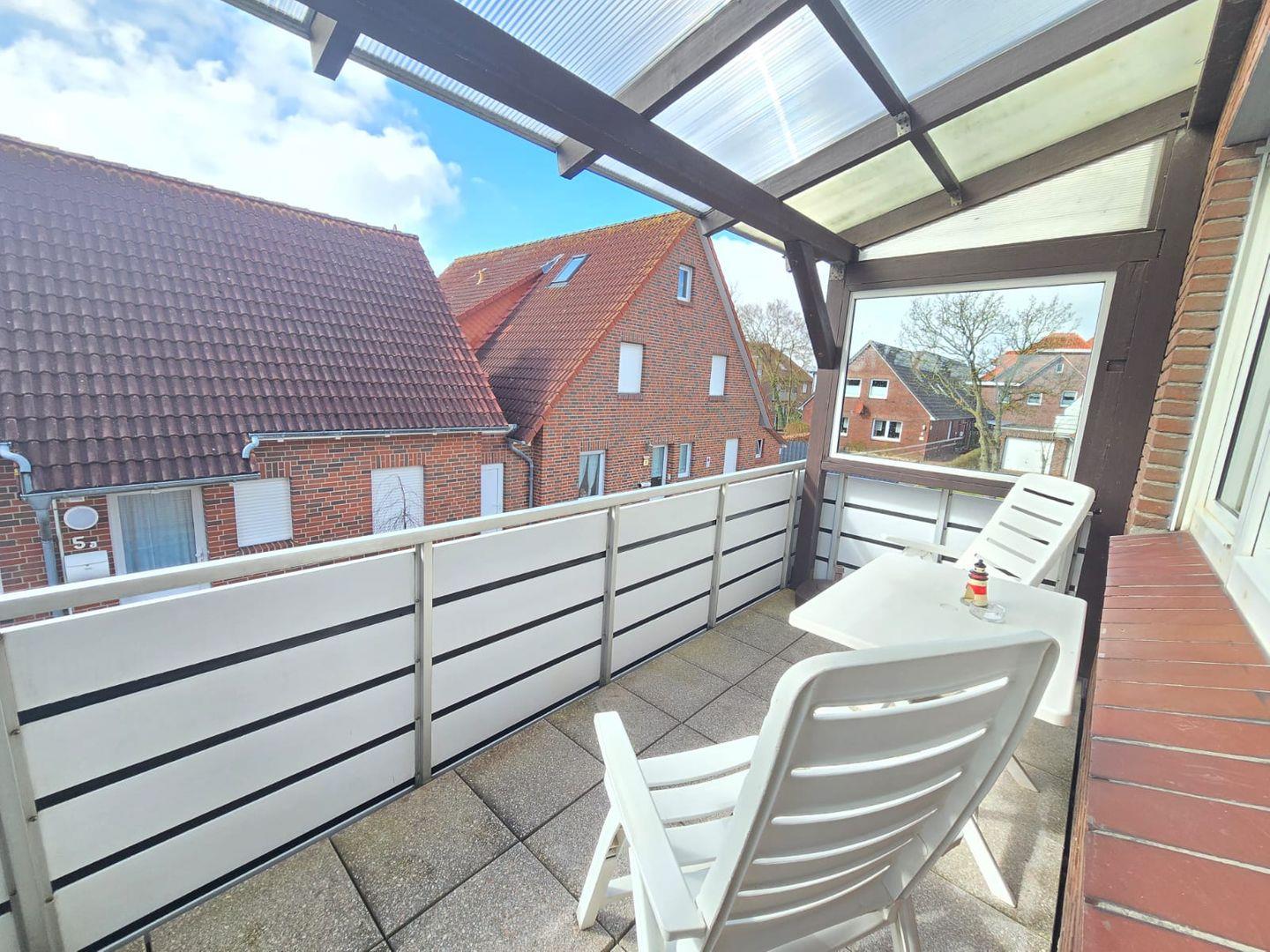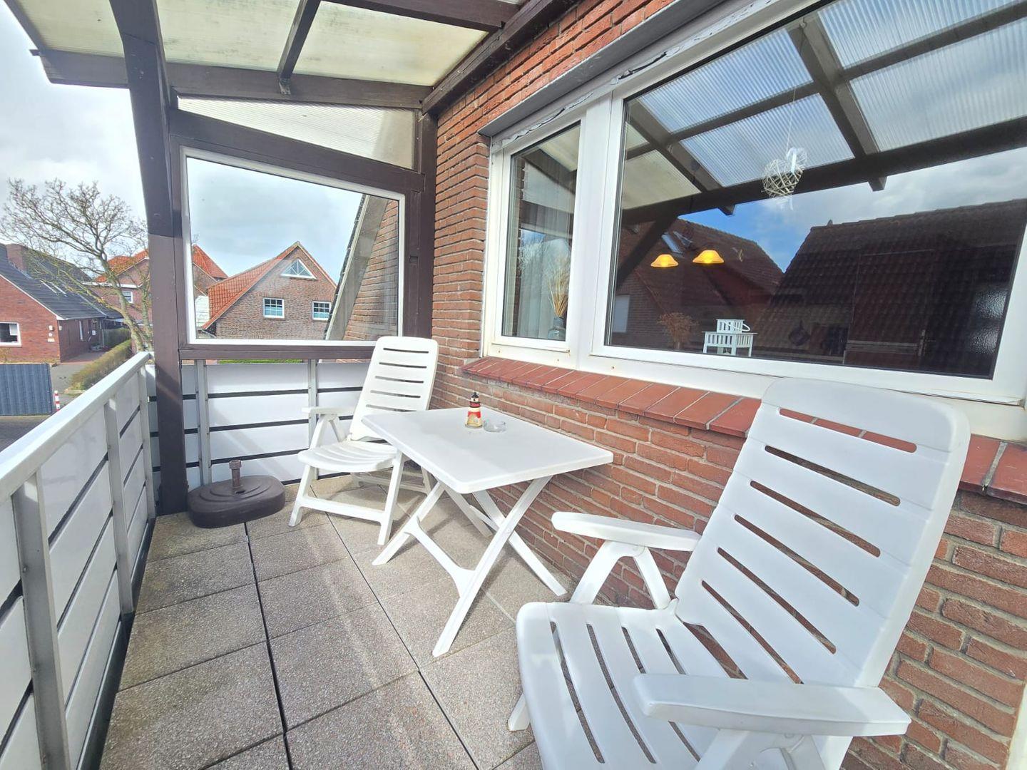 Der Balkon ist der perfekte Ort, um bei frischer Meeresbrise den Sonnenuntergang zu genießen. Nach einem langen Tag am Strand oder einem Ausflug auf die Nordseeinseln Norderney oder Juist können Sie hier einen Cocktail oder ein typisch nordisches Bier in entspannter Atmosphäre genießen.