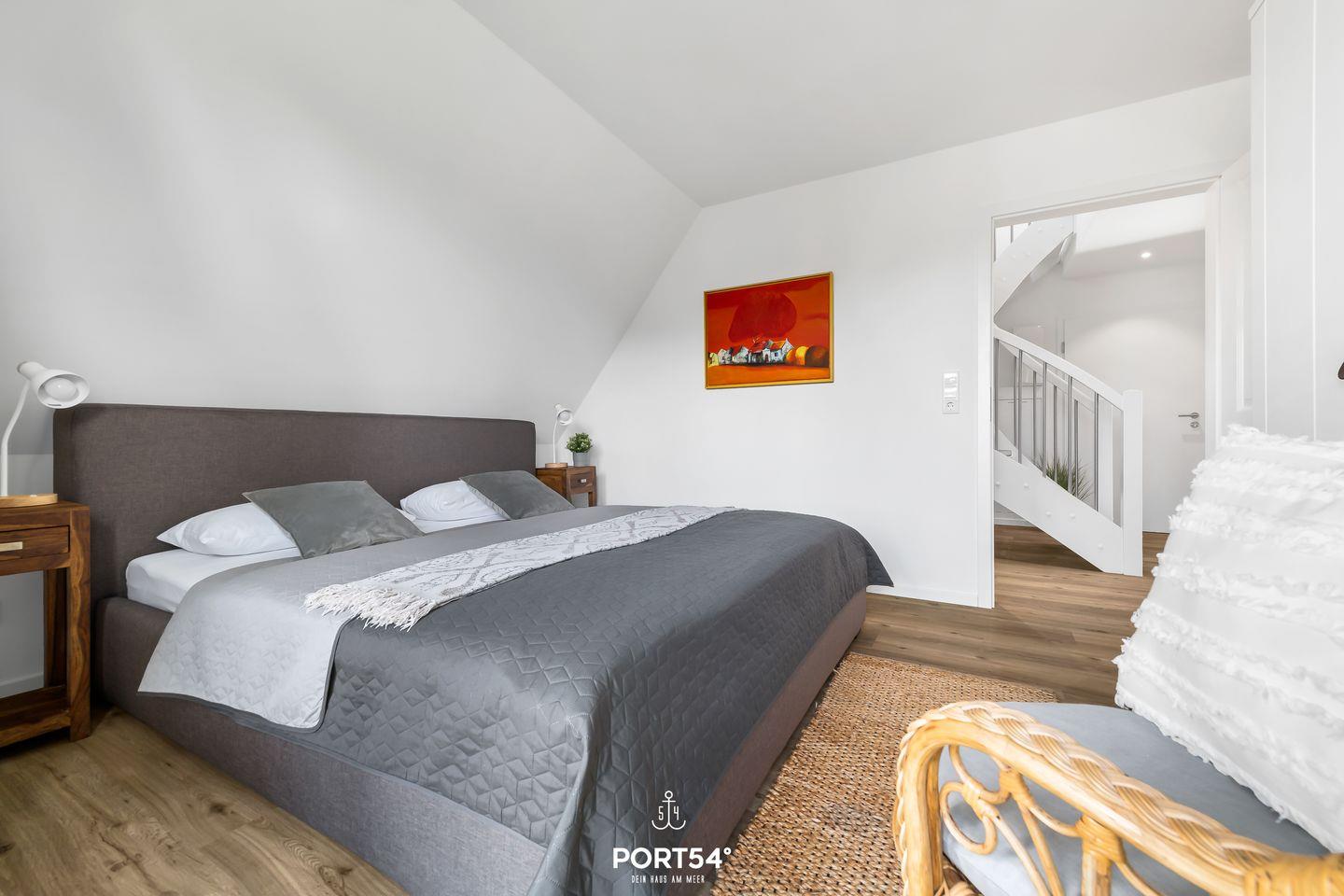 In einem der beiden Schlafzimmer erwartet Sie ein großes Boxspringbett (180x200cm) sowie Verdunklungsmöglichkeiten für die Fenster. Das andere Schlafzimmer befindet sich im ausgebauten Dachgeschoss und ist mit zwei Einzel-Boxspringbetten ausgestattet, die zu einem Doppelbett zusammengeschoben werden können. Verdunkelungsmöglichkeiten sorgen hier ebenfalls für erholsame Nächte. Ebenso finden Sie hier einen Schreibtisch und Stuhl.