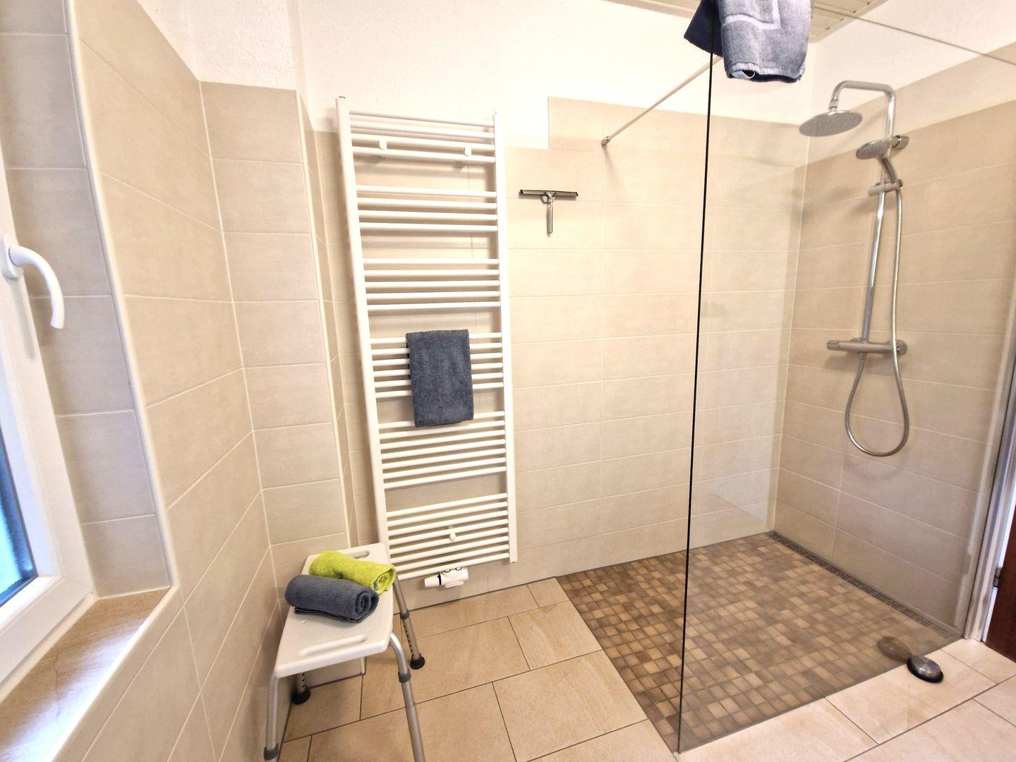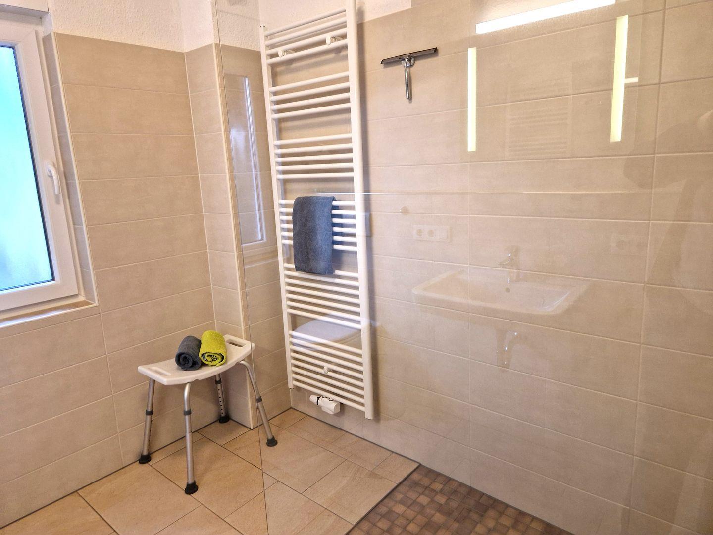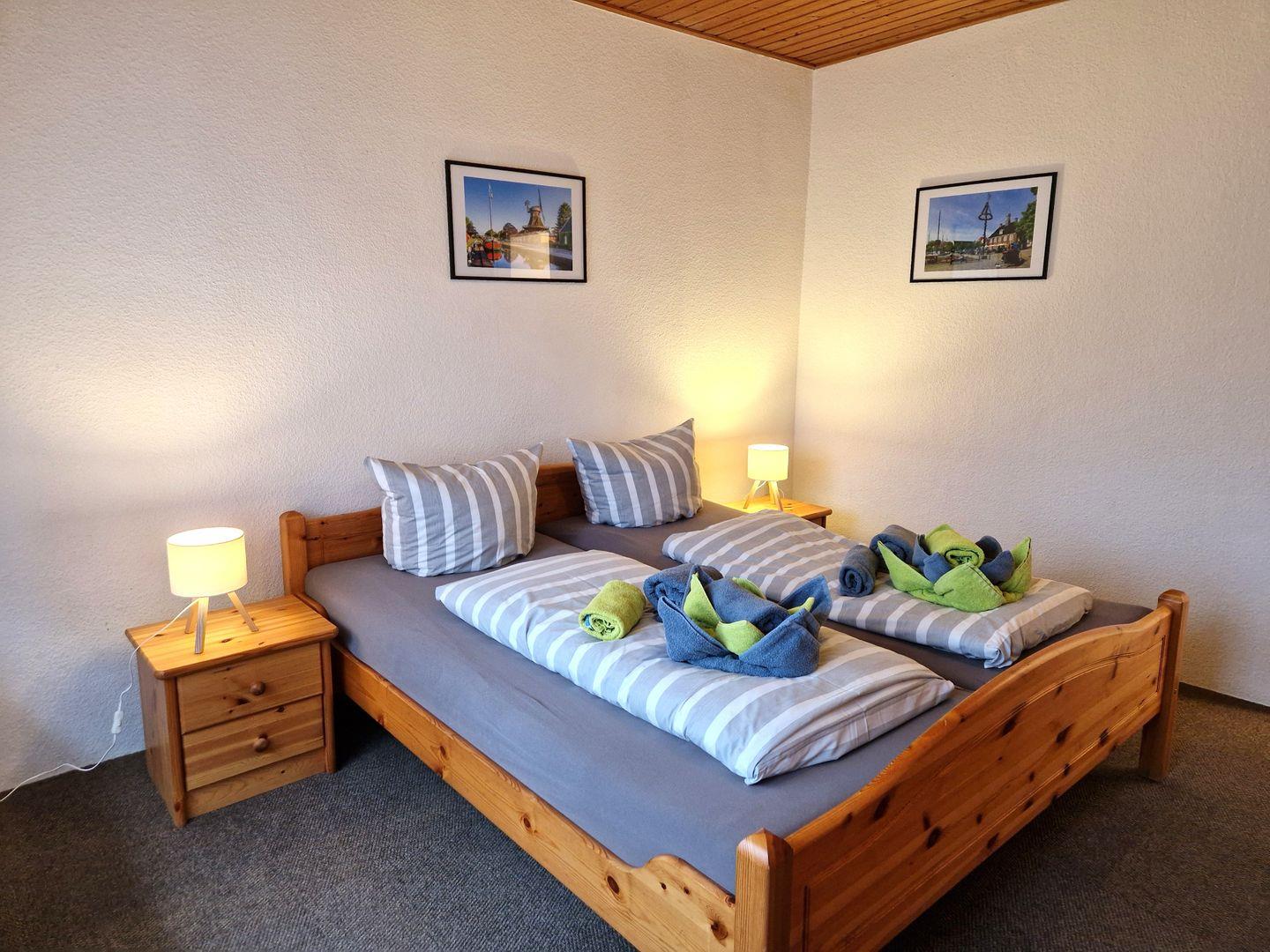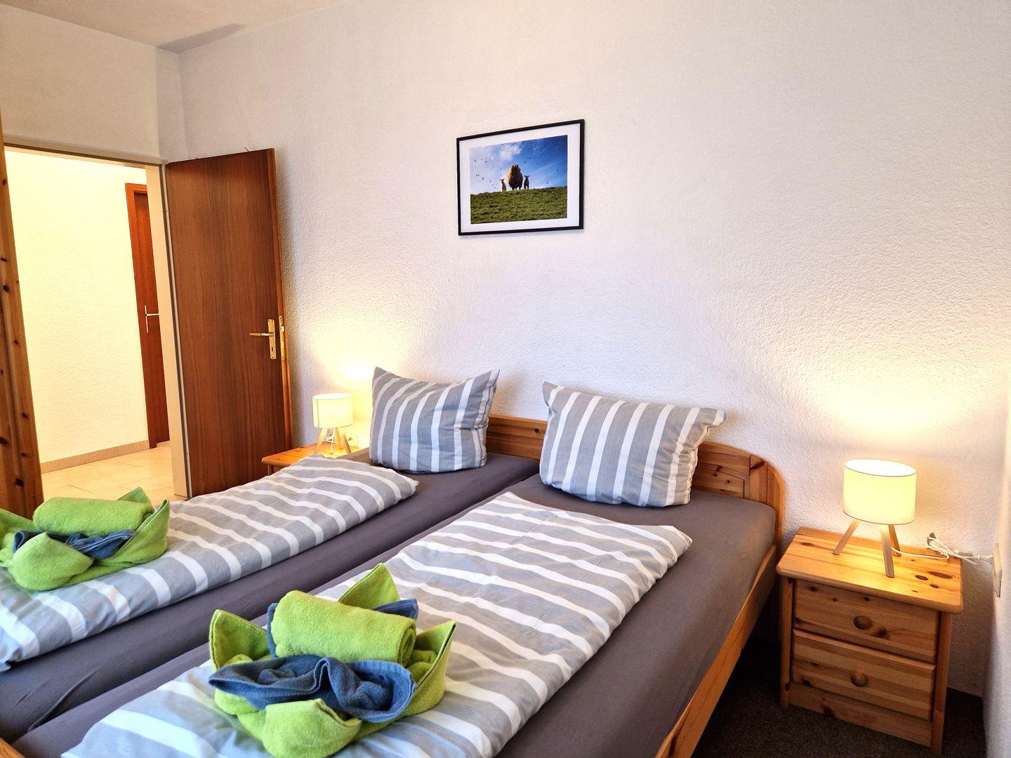 Weiter befinden sich in der Wohnung 2 Schlafzimmer mit je einem Doppelbett sowie ein neues Bad mit ebenerdiger Dusche und Fenster.