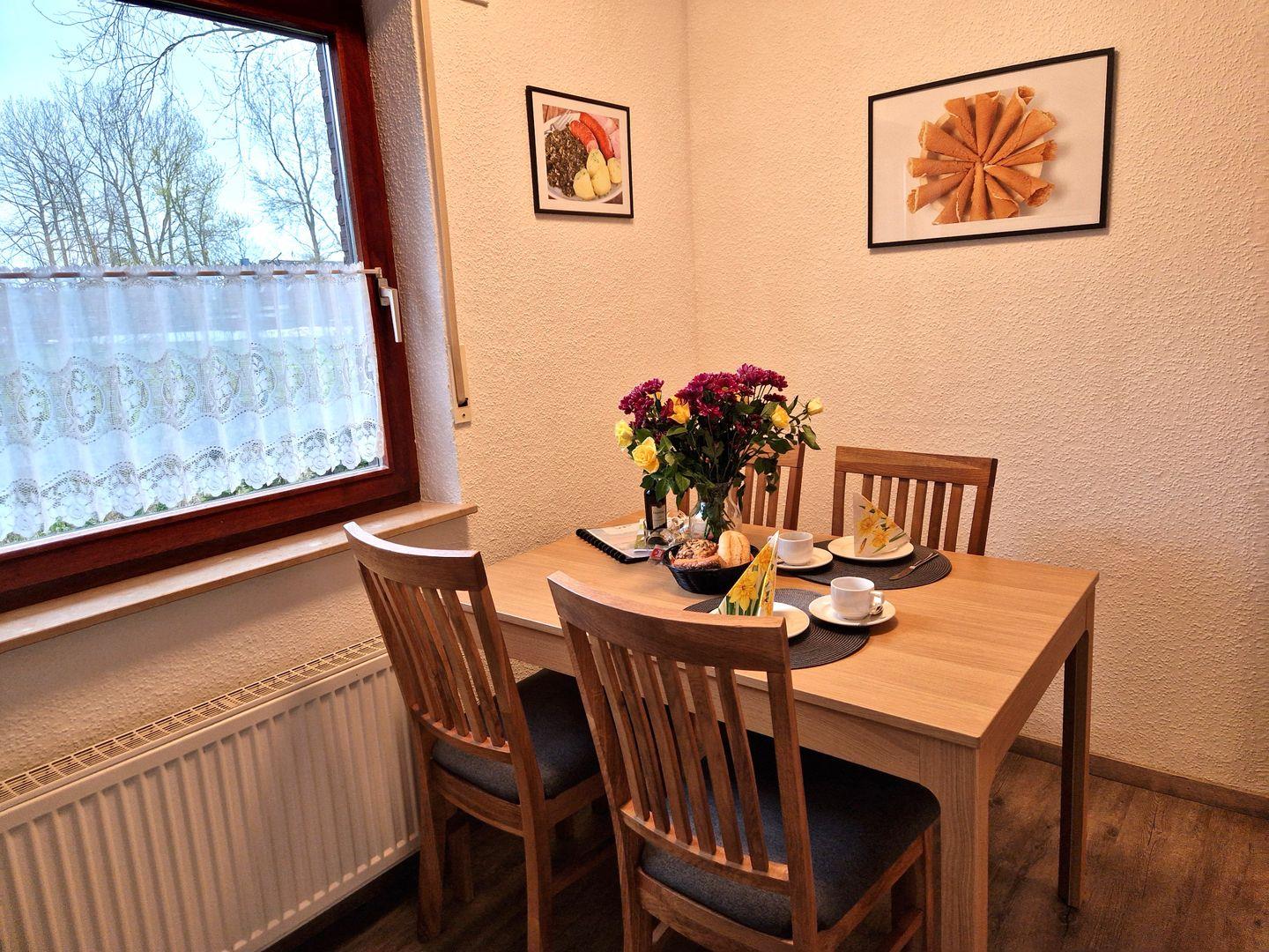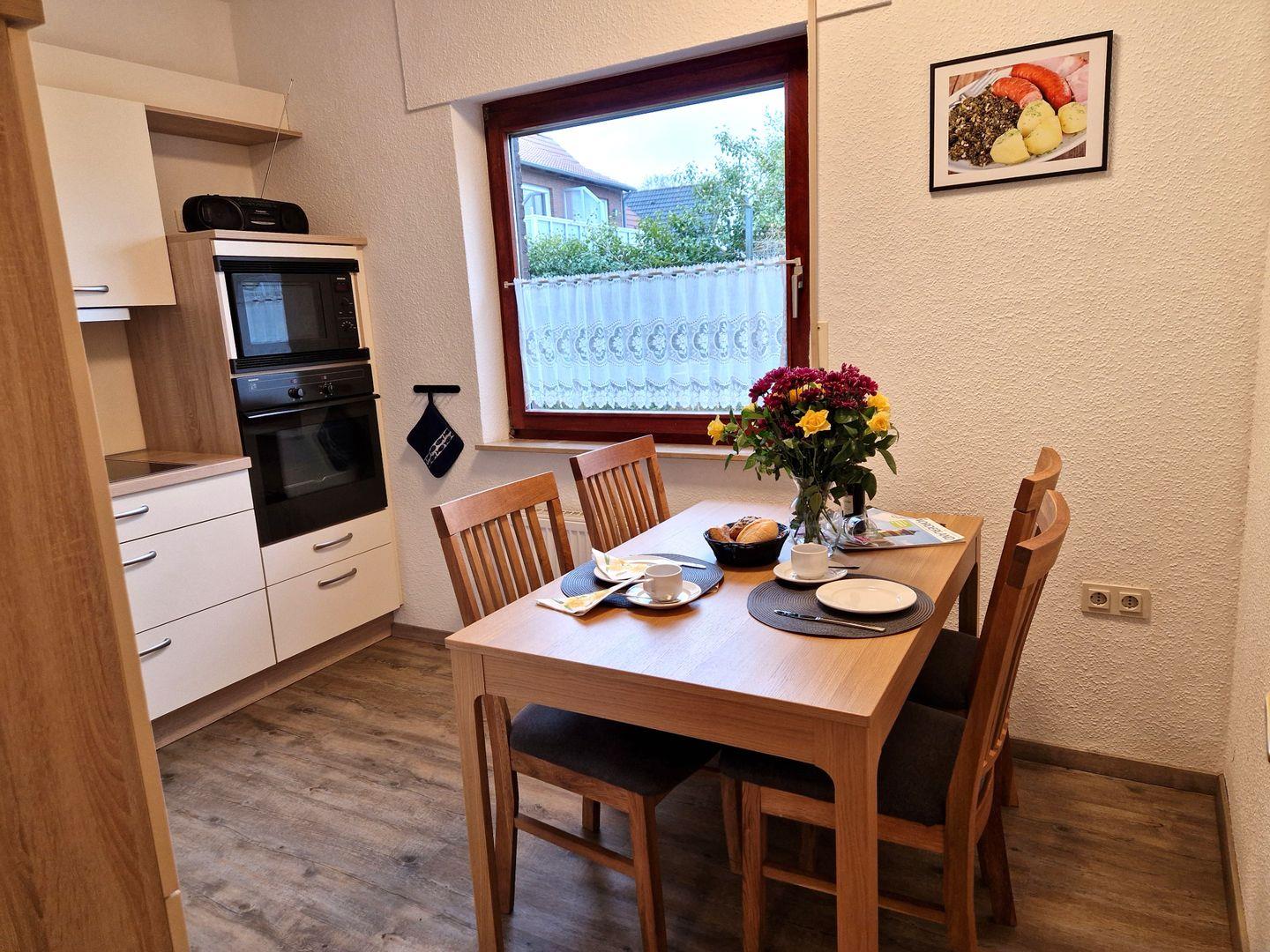 Die gemütliche, moderne Wohnküche lädt zum Verweilen bei einem Frühstück ein.