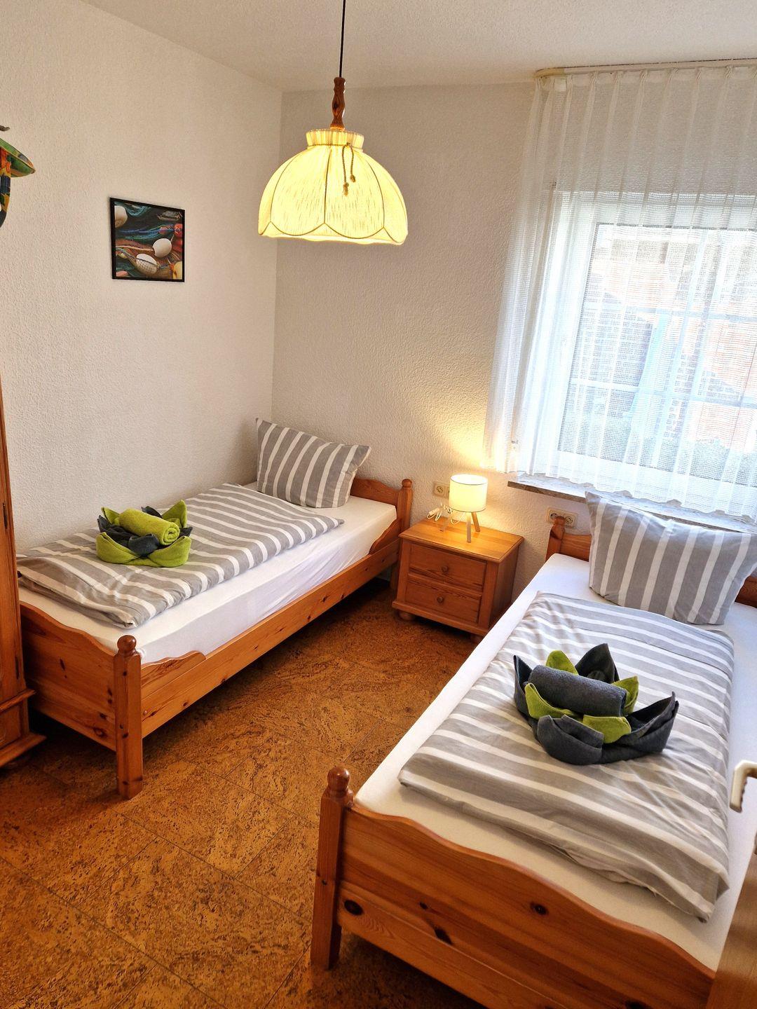 Weiter befinden sich in der Wohnung 2 Schlafzimmer, eins mit einem Doppelbett und ein weiteres mit 2 Einzelbetten.
