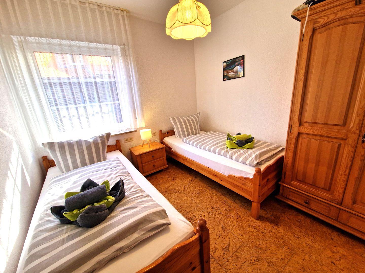 Weiter befinden sich in der Wohnung 2 Schlafzimmer, eins mit einem Doppelbett und ein weiteres mit 2 Einzelbetten.