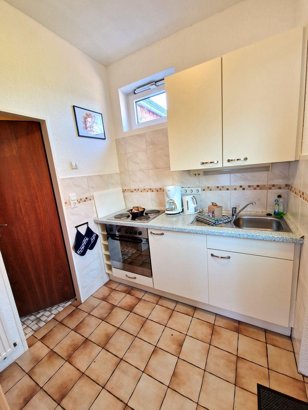 Ausgestattet ist die Küche mit einem 4 Platten Herd und einem Backofen.