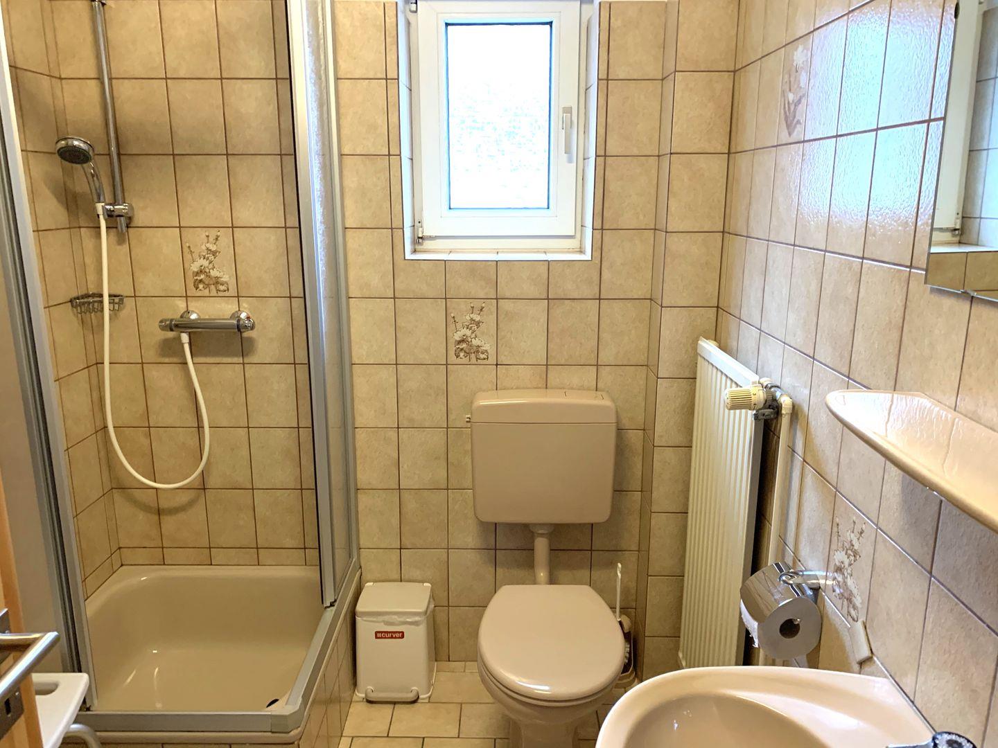 Weiter befindet sich in der Wohnung 1 Schlafzimmer mit einem Doppelbett sowie ein Bad mit Dusche und Fenster.