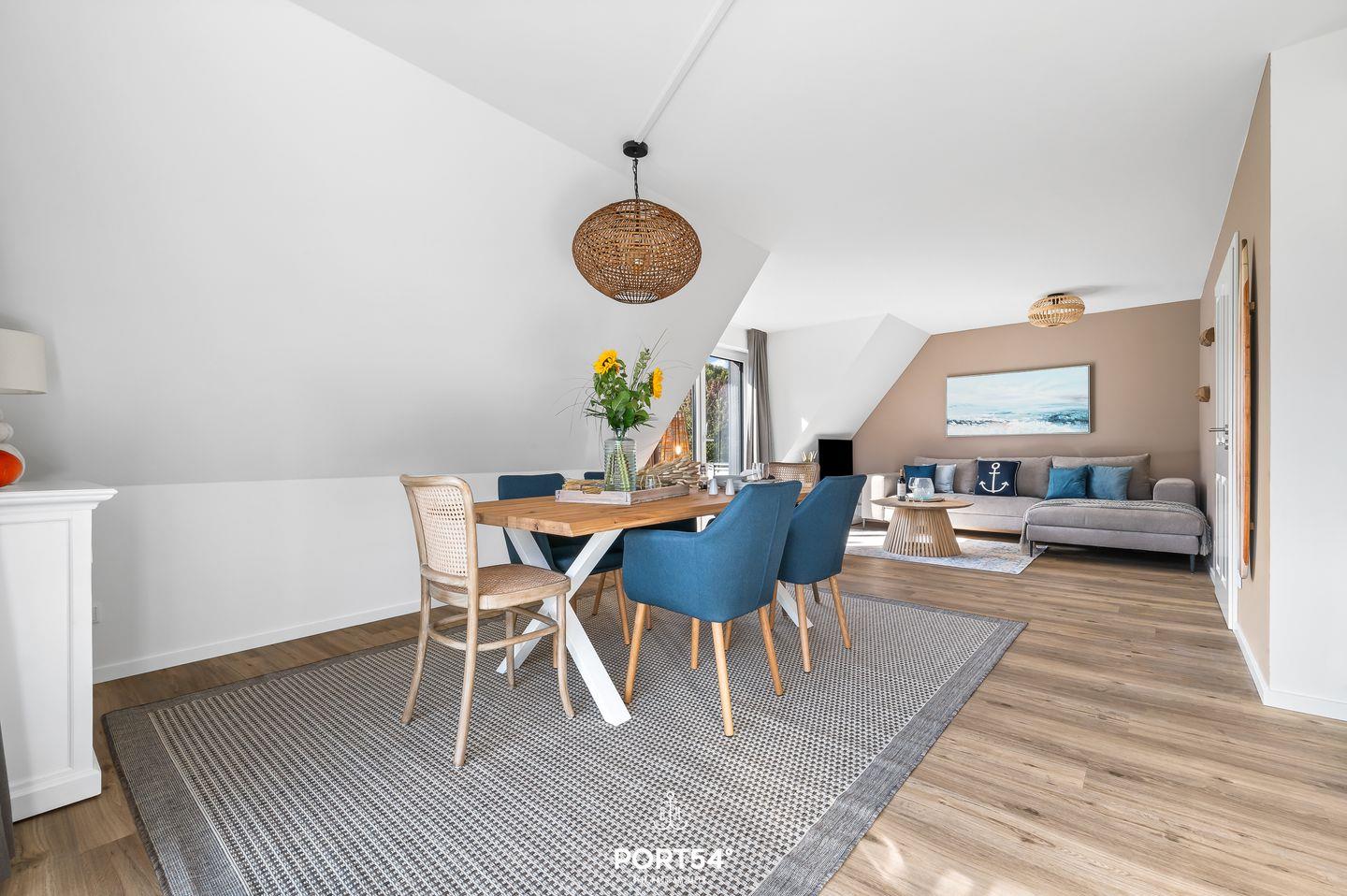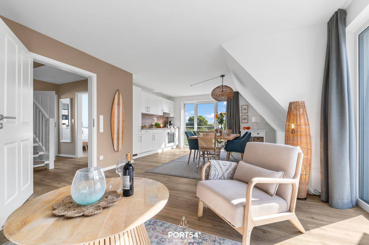 Die gemütliche, moderne und lichtdurchflutete Neubau-Ferienwohnung ,,Deichkind'' mit Balkon bietet auf 85 qm über 2 Etagen Platz für bis zu 6 Personen.