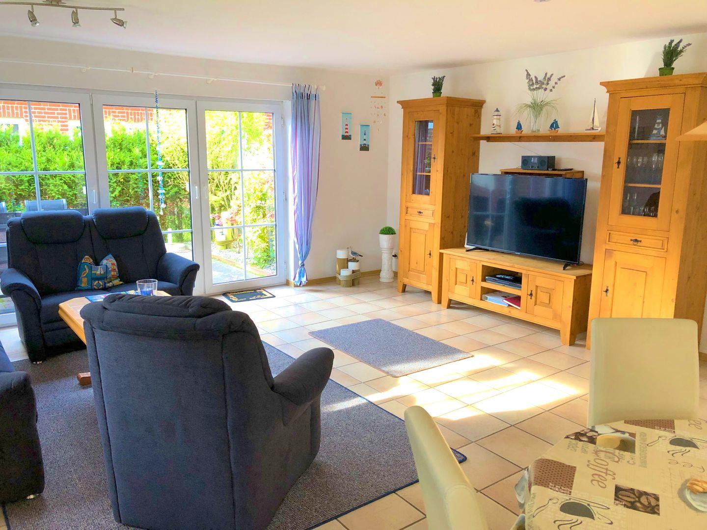 Diese geräumige Doppelhaushälfte in strandnaher Lage bietet Platz für bis zu 4 Personen. Seit 2024 gibt es ein neues, großes Schlafzimmer, während das zweite Schlafzimmer mit zwei Einzelbetten ausgestattet ist. Der Wohnbereich mit offener Küche verfügt über eine Einbauküche mit Geschirrspüler, Ceran-Kochfeld, Backofen, Kühlschrank mit Gefrierfach und Mikrowelle. Ein Badezimmer mit WC, Waschbecken und Dusche sowie ein Gäste-WC sorgen für Komfort. Die Waschmaschine im Haus erleichtert Ihren Aufenthalt.