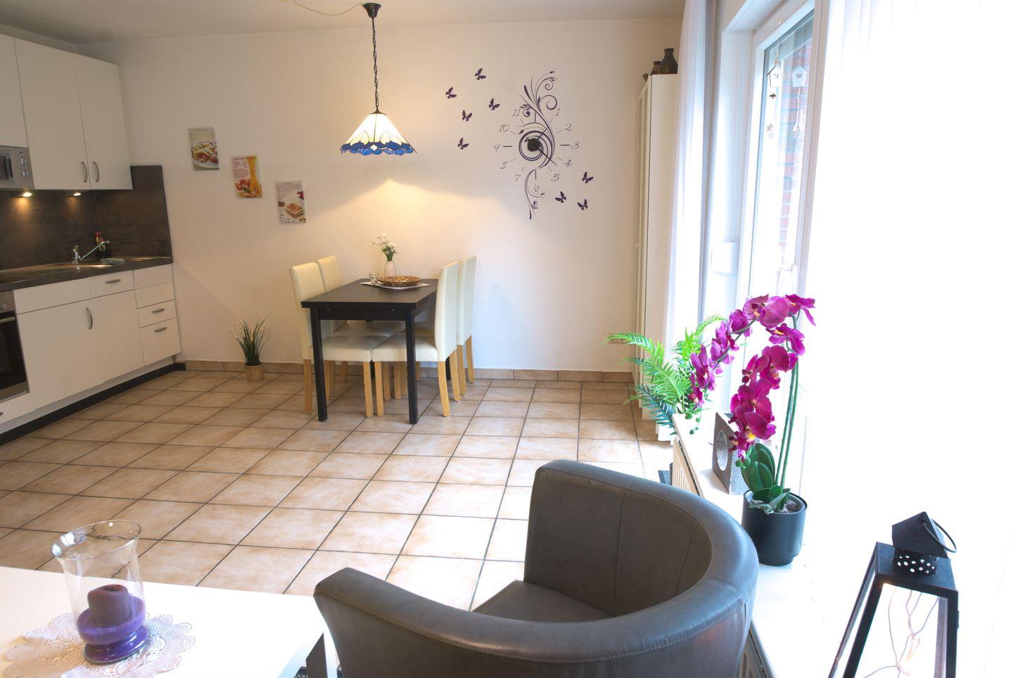 Die gemütliche Ferienwohnung für 2 Personen befindet sich in Strandnähe und bietet eine ruhige, entspannte Atmosphäre. Sie verfügt über ein separates Schlafzimmer mit Doppelbett, ein helles Wohnzimmer mit Flachbild-TV und Kabelanschluss, einen Radio-CD-Player, ausziehbarem Schlafsofa. Das 2023 renovierte Badezimmer ist mit einer ebenerdigen Dusche ausgestattet, des weiteren ein WC, Waschbecken, Spiegel, Waschmaschine und bietet Tageslicht durch ein Fenster. Die komplett ausgestattete Küchenzeile umfasst ein Cerankochfeld, Spülmaschine, einen Backofen, eine Mikrowelle und ausreichend Geschirr. Eine Terrasse mit Gartenmöbeln, Sonnenschirm und einem komplett eingezäunten Bereich lädt zum Entspannen ein. Ein Fahrradabstellraum sowie ein PKW-Einstellplatz gehören zur Wohnung. Die Ferienwohnung liegt nur