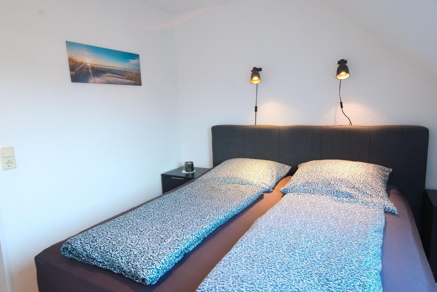 Die Allergiker freundliche Wohnung im Obergeschoss bietet auf 50 m² Platz für bis zu 4 Personen. Sie verfügt über 2 Schlafzimmer, eines mit einem Boxspringbett (180 x 200 cm). Das Wohnzimmer ist mit SAT-TV ausgestattet, und die voll ausgestattete Küche bietet ein Ceran-Kochfeld, Backofen, Spülmaschine, Mikrowelle und Kaffeemaschine. Ein Balkon mit Tisch und 4 Stühlen lädt zum Entspannen ein. Ein PKW-Stellplatz und ein Schuppen sind ebenfalls vorhanden.