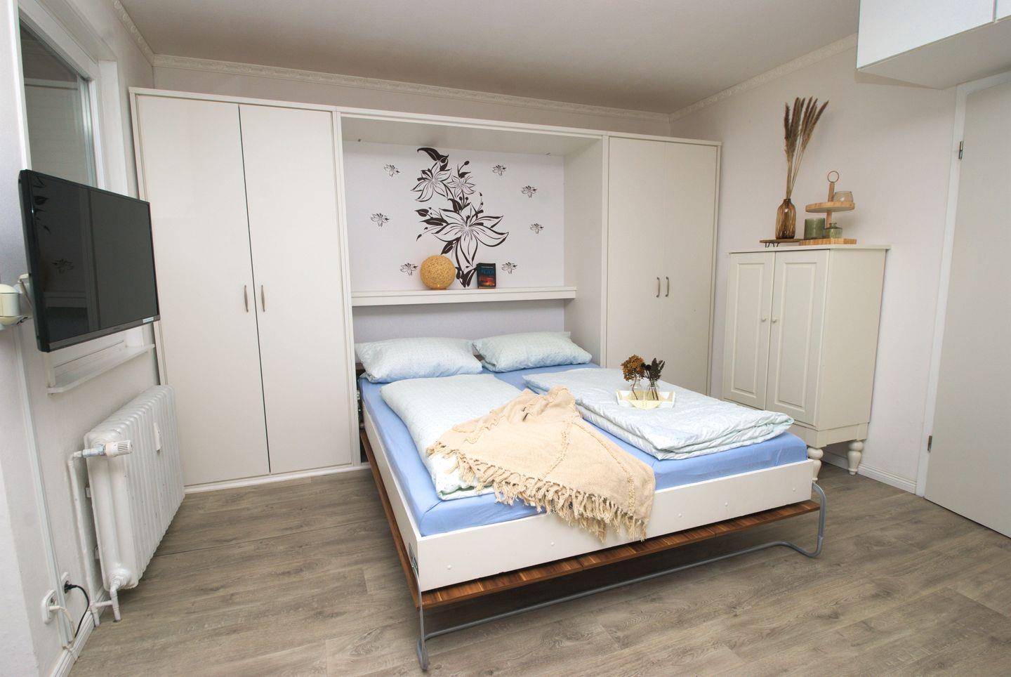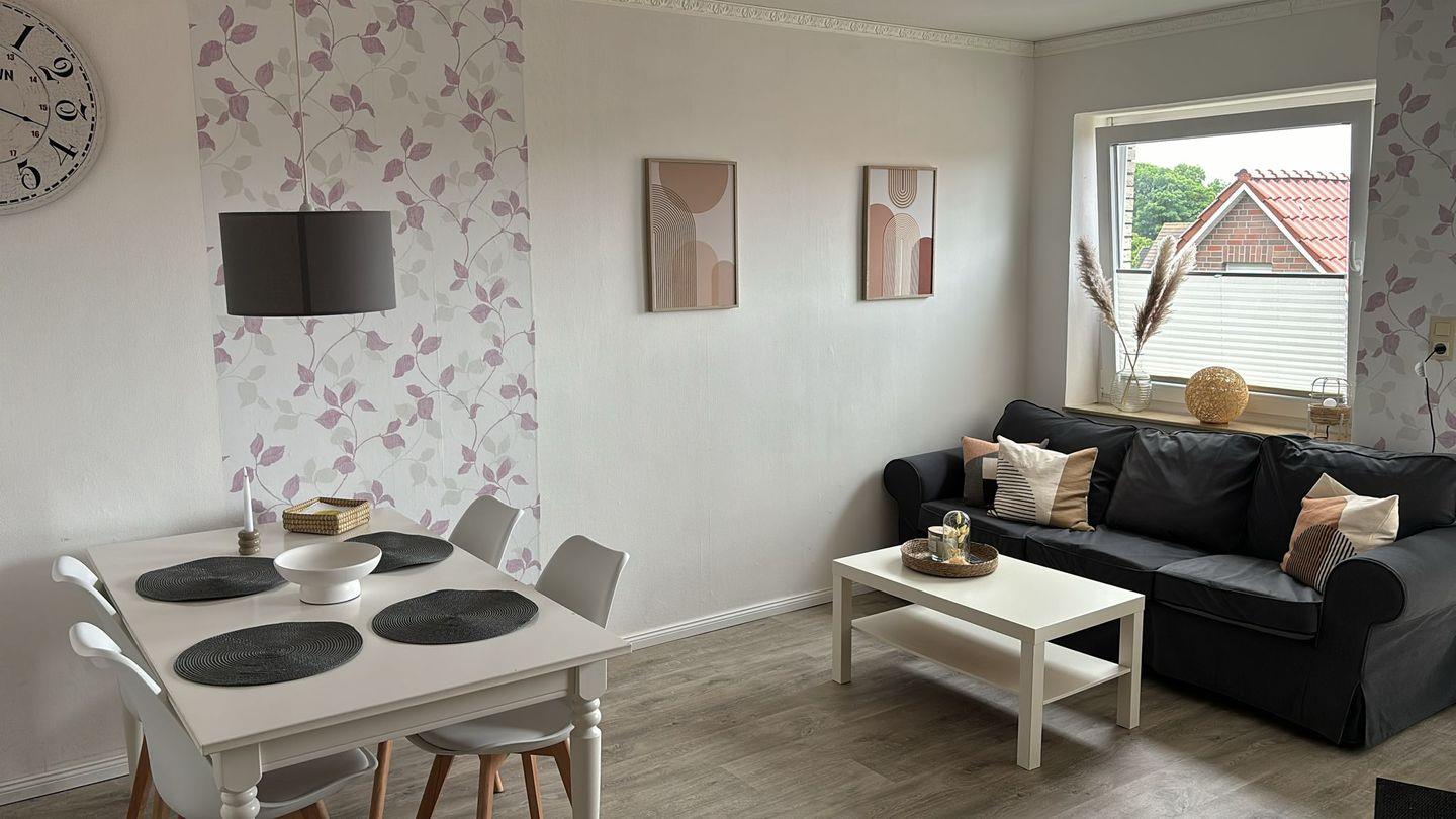 Die Ferienwohnung Strandblick für bis zu 4 Personen befindet sich in einem Gebäude direkt an Strand und Deich. Sie liegt im 2.Obergeschoss, ist mit Fahrstuhl erreichbar. Sie bietet einen Meerblick sowie eine Aussicht auf den Deich und die Insel Juist von der eigenen Loggia. Ein PKW-Stellplatz befindet sich direkt vor dem Gebäude. Die Wohnung ist hell und zeitgemäß ausgestattet und verfügt über ein separates Schlafzimmer mit 2 Einzelbetten sowie ein kombiniertes Wohn- und Schlafzimmer mit Doppelbett. Die moderne Einbauküche ist mit E-Herd, Backofen, Kühlschrank, Gefrierfach, Dunstabzug und weiteren Küchengeräten ausgestattet. Das Badezimmer bietet ein Tageslichtbad mit Dusche und WC. WLAN ist verfügbar, und ein Abstellraum für Fahrräder steht im Erdgeschoss zur Verfügung. Für E-Bikes gibt es eine Lademöglichkeit. Die Wohnung ist eine Nichtraucherwohnung und wird ganzjährig vermietet. Ein Kinderreisebett kann auf Anfrage bereitgestellt werden.