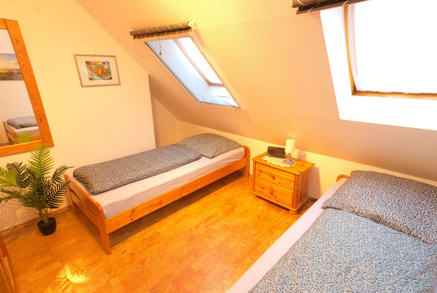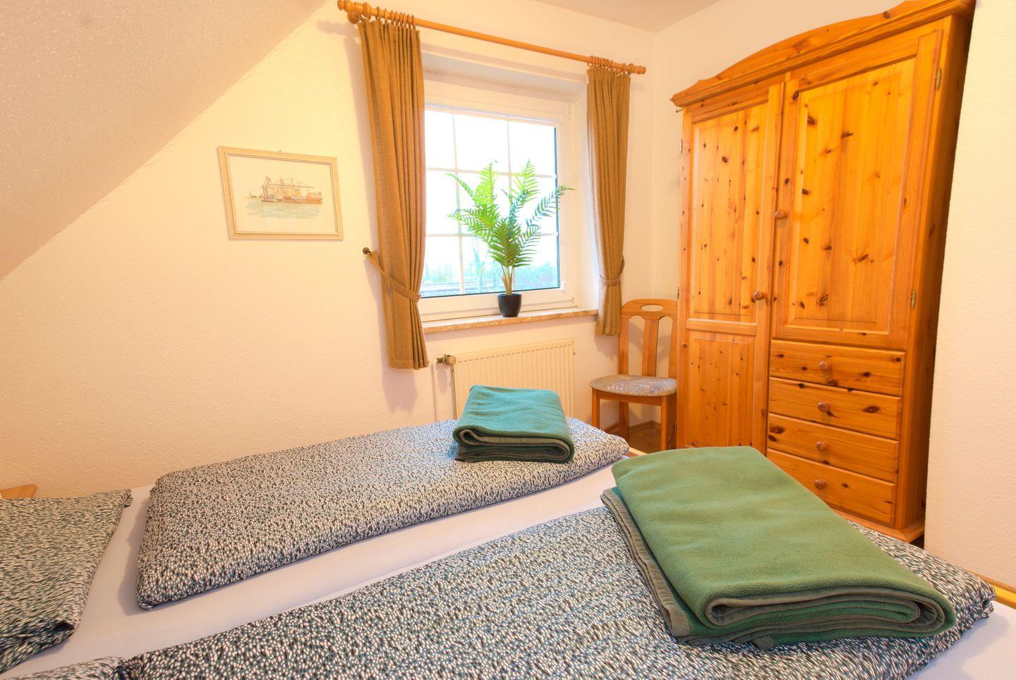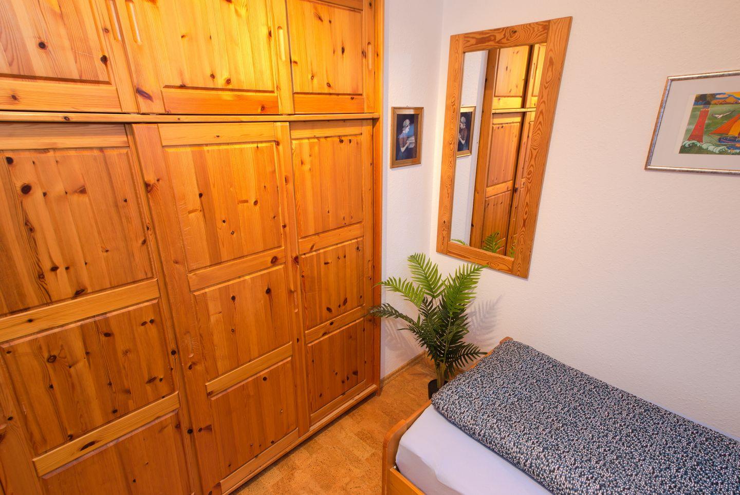Die Ferienwohnung verfügt über ein Schlafzimmer mit einem bequemen Doppelbett, sowie einem Schlafzimmer mit 2 Einzelbetten und ausreichend Stauraum für Ihre persönlichen Gegenstände. Das Zimmer ist geschmackvoll eingerichtet und sorgt für eine angenehme Nachtruhe.