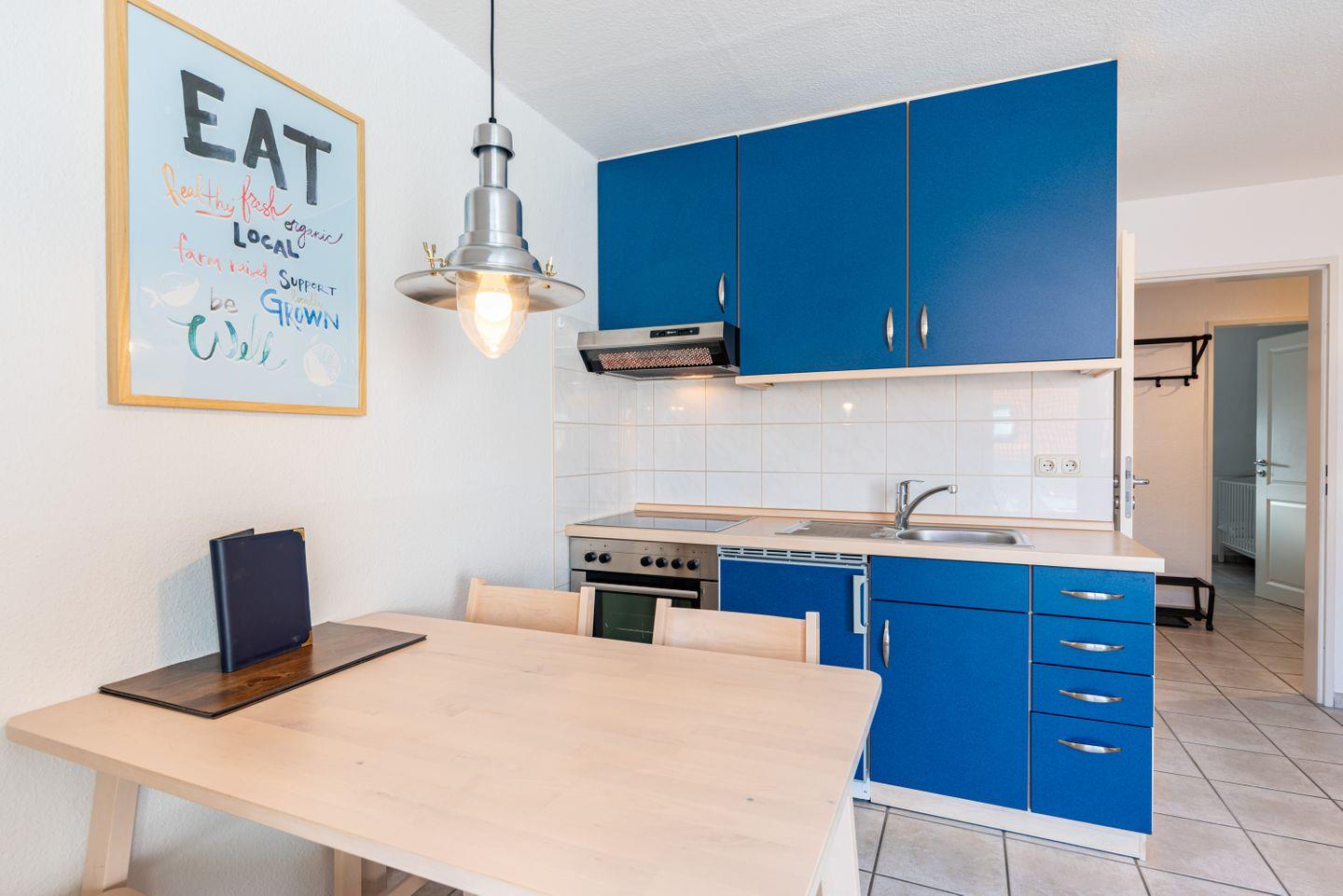 Mit einem behaglichen Schlafzimmer und einem einladenden Wohnzimmer ist sie ideal für Paare oder kleine Familien. Die moderne Kochnische ist mit Herd, Backofen, Mikrowelle und Kühlschrank bestens ausgestattet – perfekt, um auch im Urlaub leckere Mahlzeiten zu genießen. Dein Frühstück kannst du auf dem Balkon mit Blick auf die Umgebung genießen und entspannt in den Tag starten.