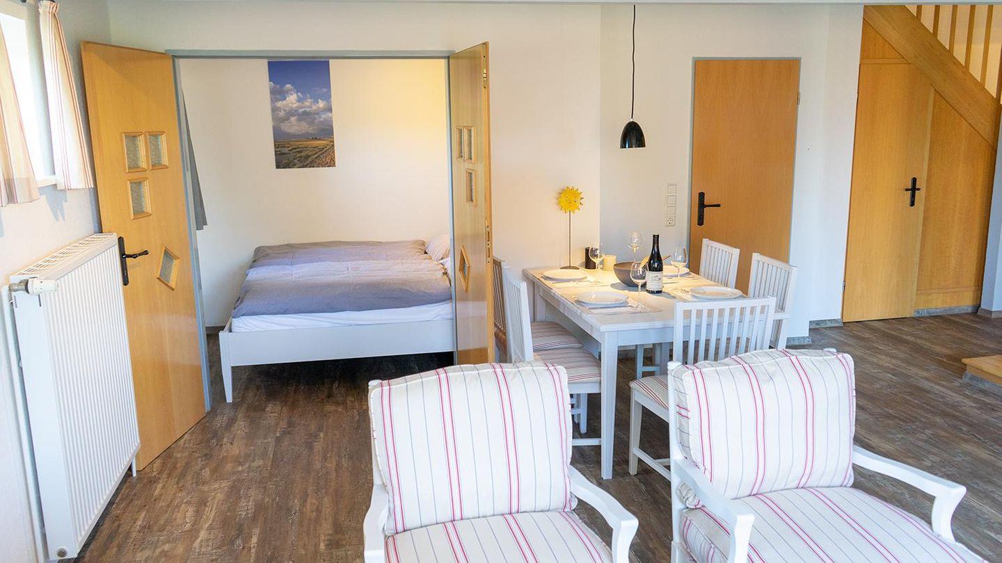 Drei gemütliche Schlafzimmer sorgen für erholsame Nächte, während der offene Wohnbereich mit Sofaecke und Esstisch zum Verweilen einlädt. Ein TV und ein DVD-Player sorgen für Unterhaltung an ruhigen Abenden.
