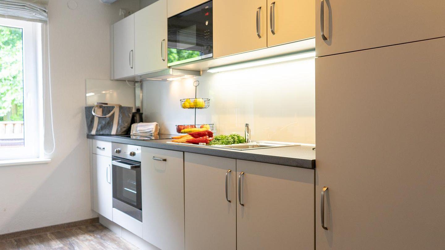 Die voll ausgestattete Küche mit Herd, Backofen, Geschirrspüler und Mikrowelle macht das Kochen zum Vergnügen. Deine Mahlzeiten kannst du im Essbereich oder auf der Terrasse mit Gartenmöbeln genießen. Ein Brötchenservice sorgt jeden Morgen für frische Backwaren.