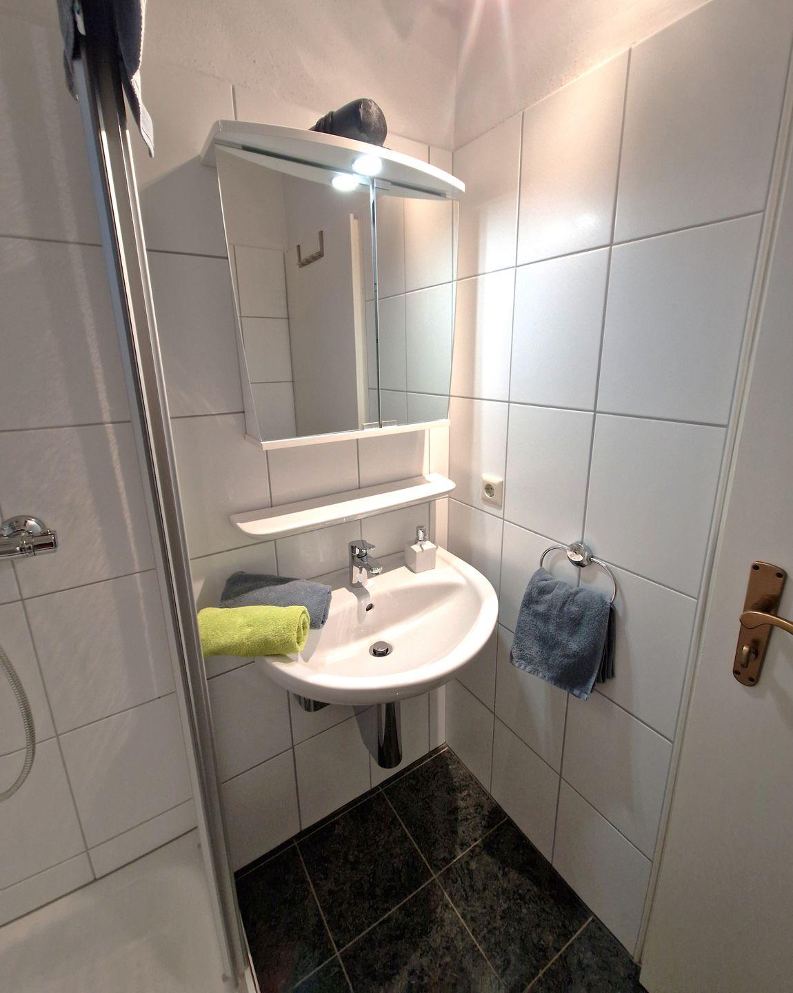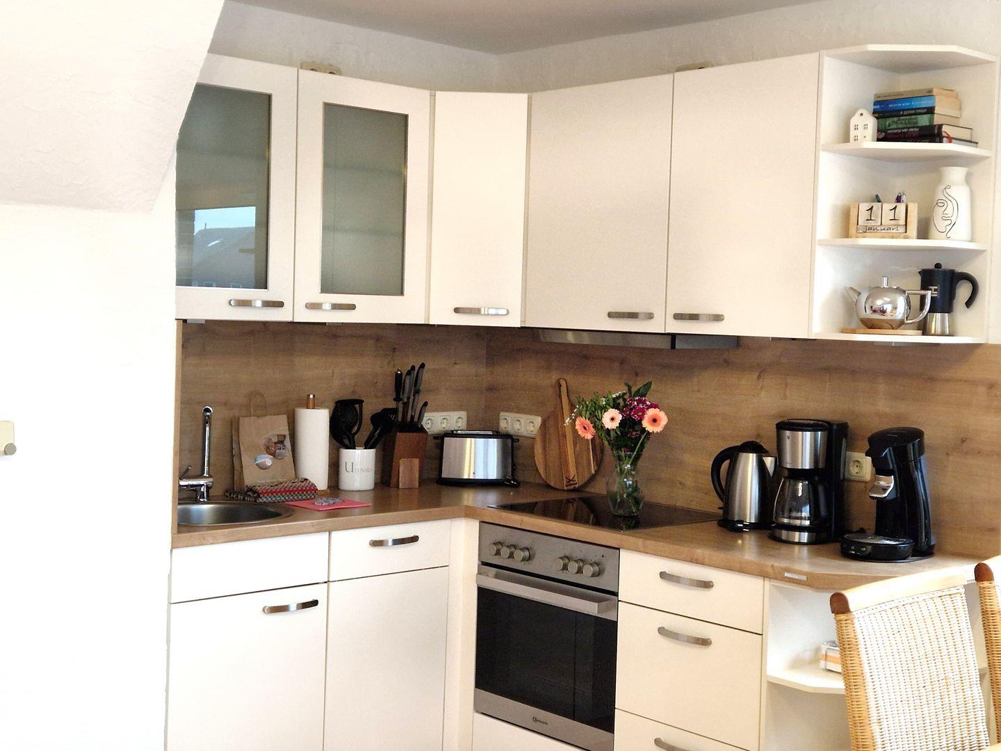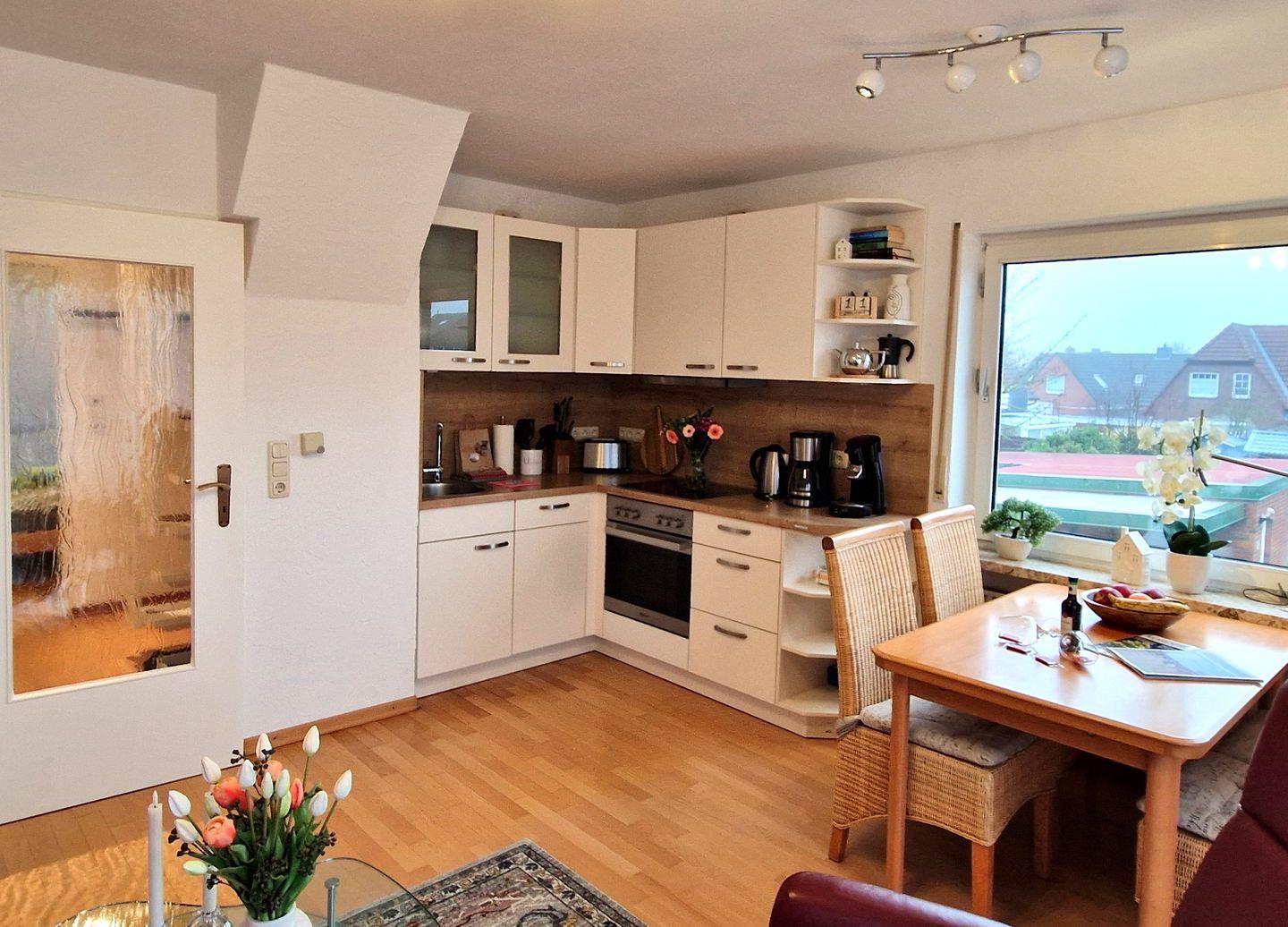 Sie verfügt über eine moderne Einrichtung. Der Wohn/Essbereich bietet genügend Platz zum Entspannen. Eine voll ausgestattete moderne Küche, mit allem was man braucht, runden diesen Raum ab. Weiter finden Sie hier ein modernes Duschbad. Es wurde mit viel Liebe zum Detail eingerichtet. Hier wurde Wohlfühlatmosphäre geschaffen.