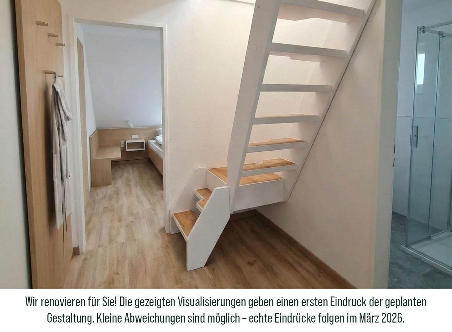 - Maisonette Wohnung, ausgebauter Spitzboden mit zwei weiteren Schlafplätzen, erreichbar über eine platzsparende Treppe