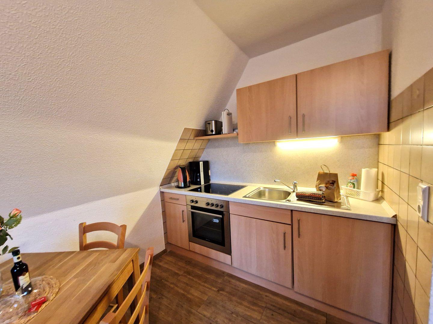 Der gemütliche Wohn/Essbereich bietet genügend Platz zum Entspannen. Die angrenzenden Küchenzeile mit allem, was man braucht, runden diesen Raum ab,