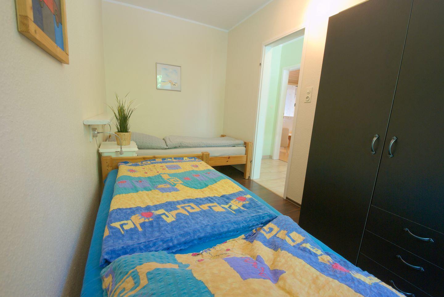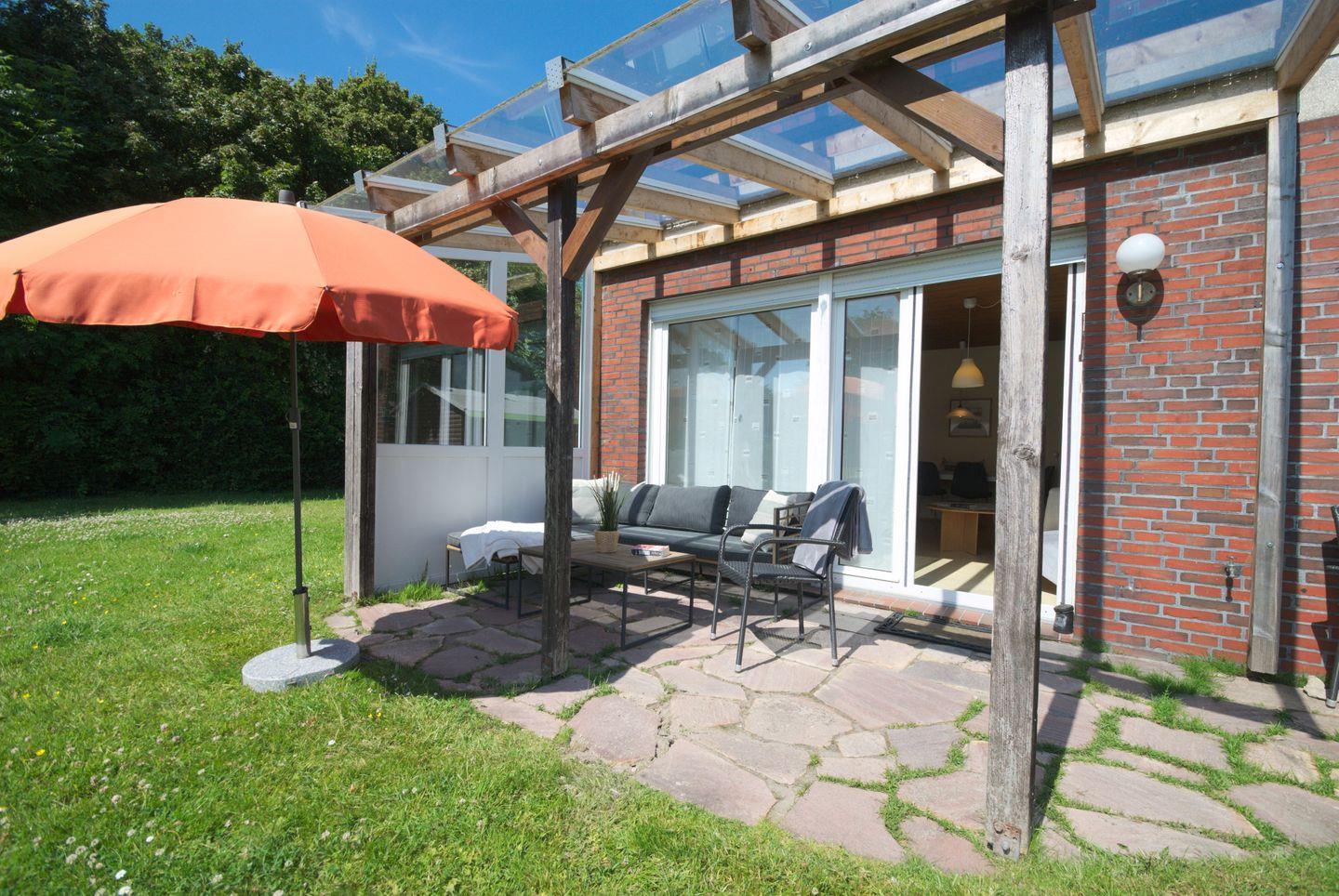 Das Ferienhaus ist ein ebenerdiger Bungalow in ruhiger Sackgassenlage und bietet für bis zu 4 Personen Schlafmöglichkeiten. Es verfügt über ein Elternschlafzimmer mit Doppelbett und ein zweites Schlafzimmer mit zwei Einzelbetten, beide mit Laminatboden. Das Wohnzimmer ist mit einer Couch (2-Sitzer und 2 Sessel), einem Flachbild-SAT-TV und einem Radio ausgestattet. Die Küche bietet ein Ceranfeld, Mikrowelle, Wasserkocher, Kaffeemaschine sowie einem Gefrierfach im Kühlschrank. Das Badezimmer umfasst eine Dusche, WC und Waschbecken. Im Außenbereich lädt ein großer eingezäunter Garten, eine überdachte Terrasse mit Gartenmöbeln und Sonnenschirm zum Entspannen/ Verweilen ein. Ein abschließbares Gartenhäuschen steht zur Verfügung. Mit einer Wohnungsparkkarte kann kostenfrei in der Straße geparkt werden. WLAN ist vorhanden. Hunde sind willkommen.