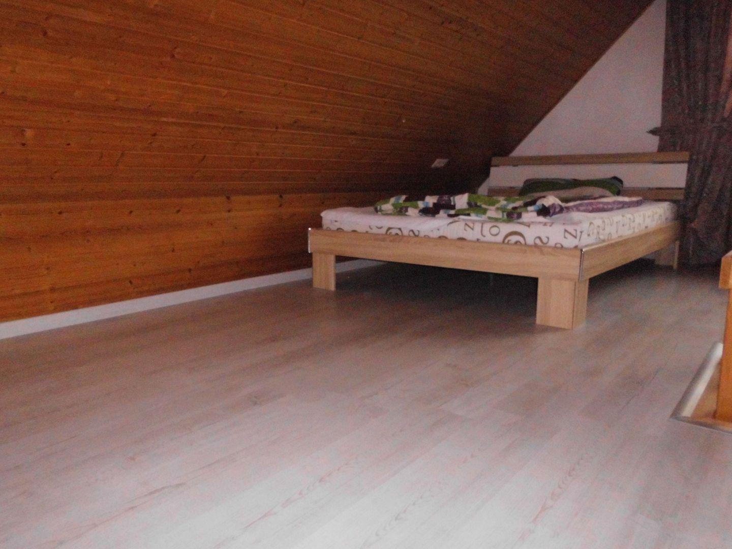 In der Etage darüber befindet sich ein großer, offener Schlafraum mit zwei Einzelbetten (Futon 1,40 x 2 m)